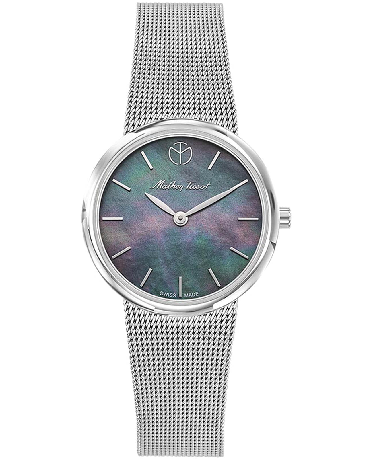 Женские кварцевые часы Mathey-Tissot Milly D403AN — это стильное сочетание элегантности и современного дизайна. Изящный корпус выполнен из нержавеющей стали серебристого цвета, диаметром 30 мм, что придаст образу элегантности и надежности. Изысканный перламутровый циферблат с метками в виде штрихов придает модели особый блеск. Циферблат защищен минеральным стекломМинеральное стеклоМинеральное стекло представляет собой искусственно выращенный минерал кварца. Такое стекло отличается особой устойчивостью к повреждениям и царапинам. Уступает по некоторым качествам сапфировому стеклу. с сапфировым покрытием, обеспечивает устойчивость к царапинам. Часы оснащены надежным кварцевым механизмом. Стальной браслет миланского плетения на раскладном замкеРаскладная застёжкаТакой тип застёжки используется только на браслетах из металла. Она никогда не раскрывается полностью, происходит разделение на 2 и более частей. Раскладывающая застёжка снизит вероятность потери часов к минимуму., гарантирует комфортное и безопасное ношение. Класс водозащиты: 30 метров позволит защитить корпус от случайных брызг или капель дождя. Mathey-Tissot  — отличный выбор для тех, кто ценит утонченность и качество.