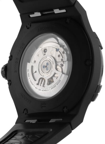 Мужские швейцарские часы Maurice Lacroix Aikon Automatic 43 mm AC6008-TTB00-330-2 с механическим механизмом (автоматический калибр) с высокой точностью. Изысканный циферблат защищен сапфировым стекломСапфировое стеклоПрочный и надёжный материал из кристалла сапфира синтетического происхождения, характеризующийся особой твёрдостью и устойчивостью к царапинам и повреждениям. с антибликовым покрытиемАнтибликовое покрытиеСлой оксида металла в 0,13-0,3 микрон, благодаря которому стекло часов не бликует и не отражает свет. Антибликовое покрытие уменьшает отражение света в 10 раз, обеспечивая отличную читаемость показателей циферблата., устойчивым к царапинам. Эта выразительная модель с корпусом из титана с DLC-покрытиемDLC-покрытиеDiamond like carbon - одно из лучших видов покрытия, представляющее собой углерод с алмазными свойствами. На поверхность материала наносятся распавшиеся молекулы углерода, превращающиеся в плёнку из алмазоподобных связей, которая перенимает твёрдость алмаза. c неподвижным безелемБезельВнешний ободок, закрепляющий стекло. В спортивных часах так называется поворотное кольцо с делениями на циферблате, выполняет роль таймера – замеряет отрезки времени на шкале. Неподвижный безель – элемент декора. Однонаправленно вращающийся безель на дайверских часах позволяет фиксировать моменты погружения и выныривания на поверхность. с керамикой. Стрелки оснащены люминесцентным покрытиемЛюминесцентное покрытиеПозволяет считывать показания времени в темноте. Производители наносят на стрелки, часовые индексы, безель или поверхность циферблата светонакопительный состав, дающий холодное свечение. SuperLumiNova®, обеспечивающим хорошую читаемость в темноте. Водозащита: 100 метров, позволит плавать, нырять. Удобный каучуковый браслет со стандартной застежкой для максимального комфорта и лёгкости в повседневном использовании. Модель подчёркивает индивидуальность владельца и идеально подходит как для повседневного образа.