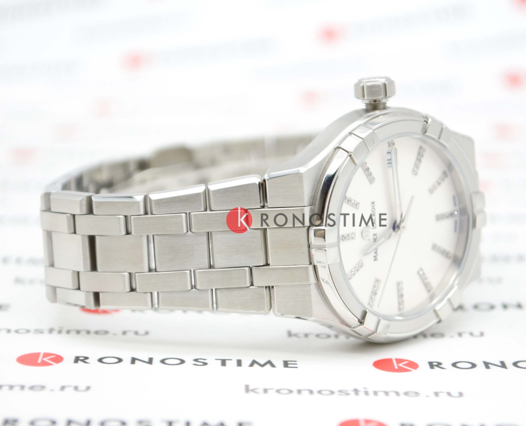 Мужские швейцарские кварцевые часы Maurice Lacroix Aikon Quartz AI1106-SS002-150-1. Сапфировое стеклоСапфировое стеклоПрочный и надёжный материал из кристалла сапфира синтетического происхождения, характеризующийся особой твёрдостью и устойчивостью к царапинам и повреждениям. устойчивое к появлению царапин, обладающее высокой прозрачностью. Белый циферблат. Стрелки с люминесцентным покрытиемЛюминесцентное покрытиеПозволяет считывать показания времени в темноте. Производители наносят на стрелки, часовые индексы, безель или поверхность циферблата светонакопительный состав, дающий холодное свечение.. Метки на циферблате украшены бриллиантами. Класс водозащиты: 100 метров, позволит плавать, нырять и заниматься другими водными видами спорта. Окошко даты находится в положении 3 часов. Корпус и браслет часов изготовлены из стали с частичным. Браслет с застёжкой «бабочка» с кнопкамиЗастёжка "бабочка"Такой вид застёжки дополняется предохранителями, помогающими избежать случайного раскрытия браслета. Обладают изящным исполнением. .