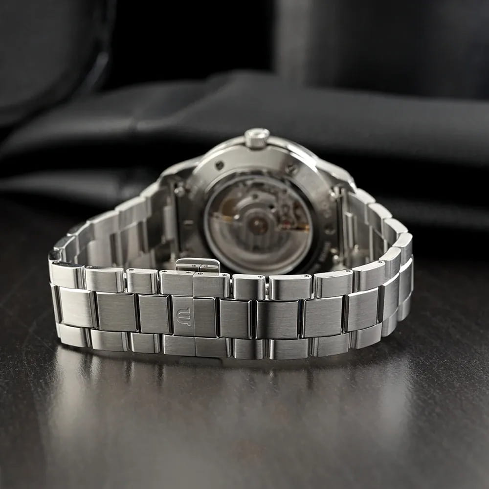 Механический механизм (автоматический калибр) с высокой точностью. Сапфировое стеклоСапфировое стеклоПрочный и надёжный материал из кристалла сапфира синтетического происхождения, характеризующийся особой твёрдостью и устойчивостью к царапинам и повреждениям. устойчивое к появлению царапин, обладающее высокой прозрачностью. Стрелки с люминесцентным покрытиемЛюминесцентное покрытиеПозволяет считывать показания времени в темноте. Производители наносят на стрелки, часовые индексы, безель или поверхность циферблата светонакопительный состав, дающий холодное свечение.. Класс водозащиты: 100 метров, позволит плавать, нырять и заниматься другими водными видами спорта. Корпус часов изготовлен из нержавеющей стали. Металлический браслет с застёжкой «бабочка» с кнопкамиЗастёжка "бабочка"Такой вид застёжки дополняется предохранителями, помогающими избежать случайного раскрытия браслета. Обладают изящным исполнением. .