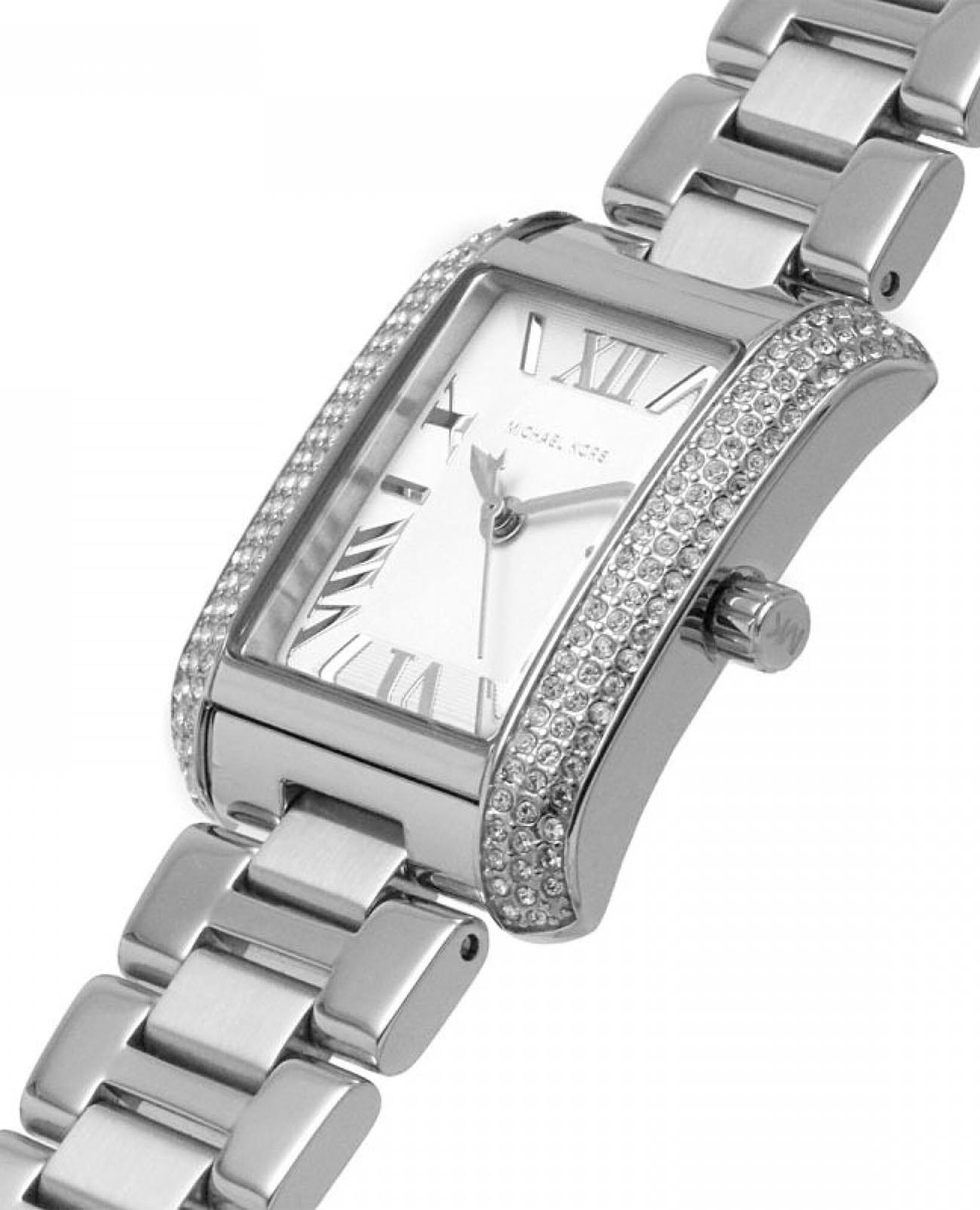 Женские американские наручные часы с минеральным стекломМинеральное стеклоМинеральное стекло представляет собой искусственно выращенный минерал кварца. Такое стекло отличается особой устойчивостью к повреждениям и царапинам. Уступает по некоторым качествам сапфировому стеклу. Michael Kors Emery MK4642, кварцевый механизм с высокой точностью. Минеральное стеклоМинеральное стеклоМинеральное стекло представляет собой искусственно выращенный минерал кварца. Такое стекло отличается особой устойчивостью к повреждениям и царапинам. Уступает по некоторым качествам сапфировому стеклу. устойчивое к появлению царапин, обладающее высокой прозрачностью. Корпус и браслет часов изготовлены из нержавеющей стали. БезельБезельВнешний ободок, закрепляющий стекло. В спортивных часах так называется поворотное кольцо с делениями на циферблате, выполняет роль таймера – замеряет отрезки времени на шкале. Неподвижный безель – элемент декора. Однонаправленно вращающийся безель на дайверских часах позволяет фиксировать моменты погружения и выныривания на поверхность. из нержавеющей стали украшен кристаллами. Класс водозащиты: 50 метров, позволит защитить корпус от случайных брызг или капель дождя. Стальной браслет на раскладной застёжкеРаскладная застёжкаТакой тип застёжки используется только на браслетах из металла. Она никогда не раскрывается полностью, происходит разделение на 2 и более частей. Раскладывающая застёжка снизит вероятность потери часов к минимуму..