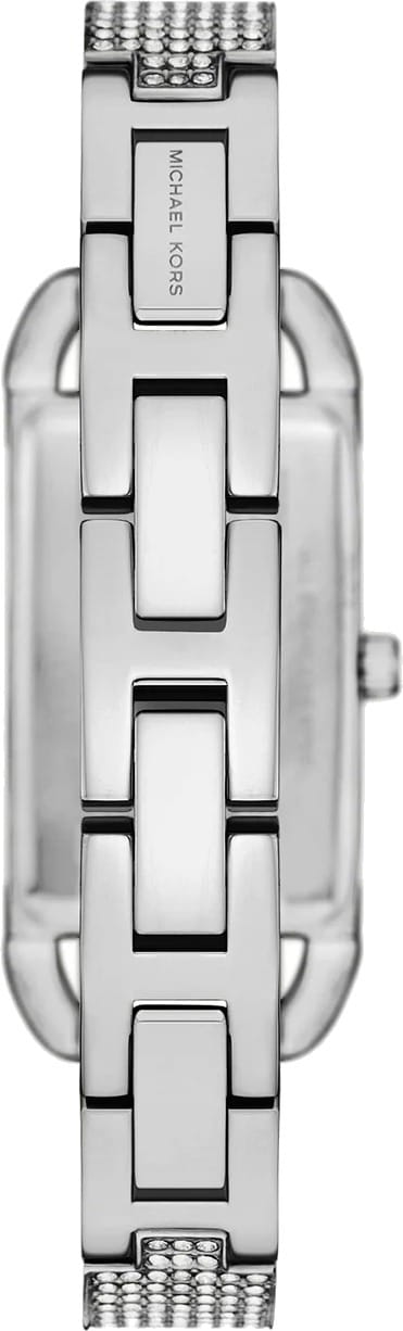 Эти часы от Michael Kors MK4841 воплощают в себе гармоничное сочетание стиля и изысканности, добавляя элегантность в любой женский образ. Они оснащены надежным кварцевым механизмом, который обеспечивает точность хода. Прямоугольный корпус выполнен из стали, придавая изделию прочность и современный вид. Серебристый циферблат без меток украшен кристаллами, создающими эффектное сияние, и надежно защищен минеральным стекломМинеральное стеклоМинеральное стекло представляет собой искусственно выращенный минерал кварца. Такое стекло отличается особой устойчивостью к повреждениям и царапинам. Уступает по некоторым качествам сапфировому стеклу., что обеспечивает долговечность и устойчивость к царапинам. Стальной браслет, декорированный паве из кристаллов, усиливает визуальное впечатление и подчеркивает роскошный дизайн часов. Ювелирная застежка гарантирует удобство и безопасность при ношении. Рифленая заводная головка и клиновидные стрелки в стиле Dauphine дополняют общий образ изделия, подчеркивая внимание к деталям. Водозащита 50WR позволяет носить часы в различных условиях, не беспокоясь о случайных попаданиях воды. Эти часы станут идеальным выбором для тех, кто ценит утонченность и качество в аксессуарах.
