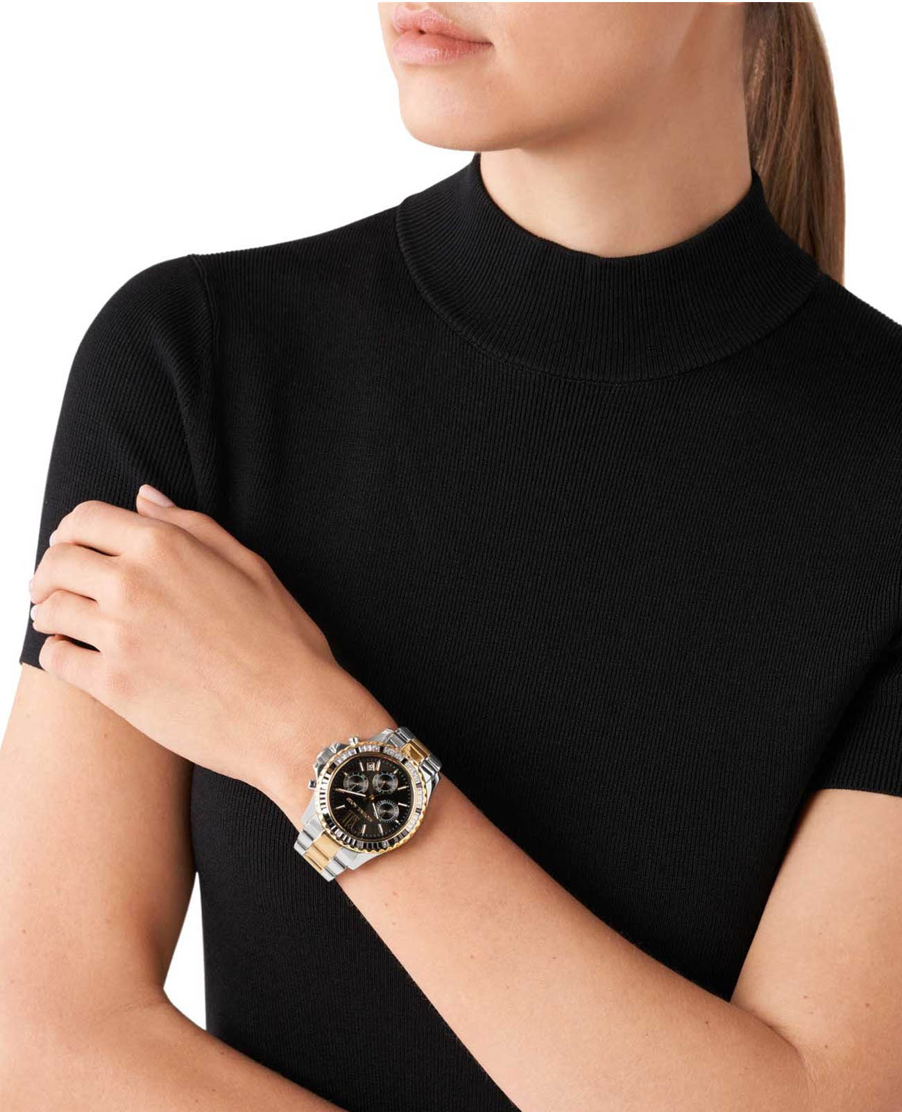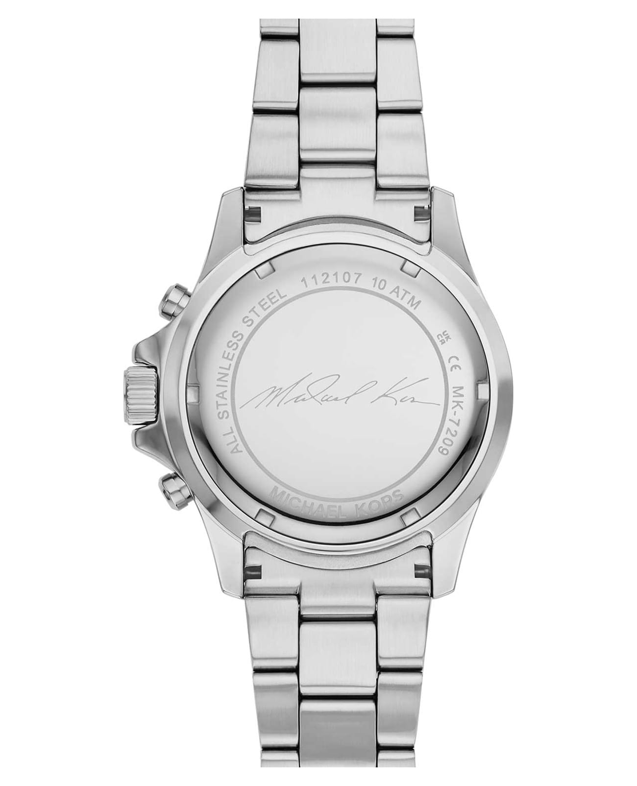 Женские американские часы-хронографХронографФункция позволяет измерять отрезки времени с особой точностью: часы, минуты, секунды. Верным признаком хронографа является наличие на циферблате 3 дополнительных окошек-счётчиков. с секундомеромСекундомерСекундоме́р — прибор, способный измерять интервалы времени с точностью до долей секунды. и с минеральным стекломМинеральное стеклоМинеральное стекло представляет собой искусственно выращенный минерал кварца. Такое стекло отличается особой устойчивостью к повреждениям и царапинам. Уступает по некоторым качествам сапфировому стеклу. Michael Kors Everest MK7209, кварцевый механизм с высокой точностью. Корпус часов изготовлен из нержавеющей стали. БезельБезельВнешний ободок, закрепляющий стекло. В спортивных часах так называется поворотное кольцо с делениями на циферблате, выполняет роль таймера – замеряет отрезки времени на шкале. Неподвижный безель – элемент декора. Однонаправленно вращающийся безель на дайверских часах позволяет фиксировать моменты погружения и выныривания на поверхность. с PVD-покрытиемPVDУльтратонкое покрытие наносится в технике вакуумного напыления, сочетает в себе нитрид титана особой прочности со слоем золота или оксида хрома. Несёт в себе декоративную или защитную функцию.украшен кристаллами. Циферблат выполнен по технологии Sunray (солнечные лучи). Три дополнительных индикатора. Метки в виде штрихов и римских цифр. Окошко даты находится между 4 и 5 часами. Стрелки с люминесцентным покрытиемЛюминесцентное покрытиеПозволяет считывать показания времени в темноте. Производители наносят на стрелки, часовые индексы, безель или поверхность циферблата светонакопительный состав, дающий холодное свечение.. Заводная головка с защитой. Класс водозащиты: 100 метров, позволит плавать, нырять и заниматься другими водными видами спорта. Стальной браслет с частичным PVD-покрытиемPVDУльтратонкое покрытие наносится в технике вакуумного напыления, сочетает в себе нитрид титана особой прочности со слоем золота или оксида хрома. Несёт в себе декоративную или защитную функцию. на раскладной застёжкеРаскладная застёжкаТакой тип застёжки используется только на браслетах из металла. Она никогда не раскрывается полностью, происходит разделение на 2 и более частей. Раскладывающая застёжка снизит вероятность потери часов к минимуму..