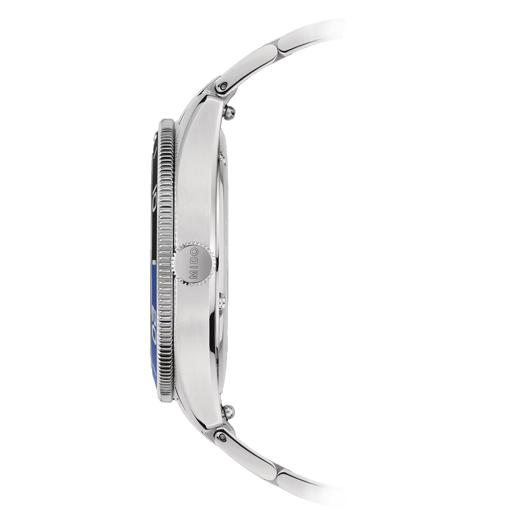 Мужские швейцарские механические часы с сапфировым стеклом Mido Ocean Star 39 M026.907.11.041.00, механический механизм (автоматический калибр) с высокой точностью. Сапфировое стеклоСапфировое стеклоПрочный и надёжный материал из кристалла сапфира синтетического происхождения, характеризующийся особой твёрдостью и устойчивостью к царапинам и повреждениям. устойчивое к появлению царапин, обладающее высокой прозрачностью. Корпус часов изготовлен из нержавеющей стали. Вращающийся безельБезельВнешний ободок, закрепляющий стекло. В спортивных часах так называется поворотное кольцо с делениями на циферблате, выполняет роль таймера – замеряет отрезки времени на шкале. Неподвижный безель – элемент декора. Однонаправленно вращающийся безель на дайверских часах позволяет фиксировать моменты погружения и выныривания на поверхность. из нержавеющей стали с PVDPVDУльтратонкое покрытие наносится в технике вакуумного напыления, сочетает в себе нитрид титана особой прочности со слоем золота или оксида хрома. Несёт в себе декоративную или защитную функцию. покрытием и керамики с покрытием Superluminova. Циферблат украшают метки с бриллиантами. Стрелки и метки с люминесцентным покрытиемЛюминесцентное покрытиеПозволяет считывать показания времени в темноте. Производители наносят на стрелки, часовые индексы, безель или поверхность циферблата светонакопительный состав, дающий холодное свечение.. Окошко даты в положении 3 часов. Класс водозащиты: 200 метров, позволит плавать, нырять и заниматься другими водными видами спорта.