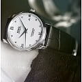 Стильная модель для прекрасной половины. Циферблат украшен 8 бриллиантами. Механический механизм (автоматический калибр) с высокой точностью. Сапфировое стеклоСапфировое стеклоПрочный и надёжный материал из кристалла сапфира синтетического происхождения, характеризующийся особой твёрдостью и устойчивостью к царапинам и повреждениям. устойчивое к появлению царапин, обладающее высокой прозрачностью. Класс водозащиты: 30 метров, позволит защитить корпус от случайных брызг или капель дождя. Корпус часов изготовлен из нержавеющей стали. Кожаный ремешок с раскладной застёжкойРаскладная застёжкаТакой тип застёжки используется только на браслетах из металла. Она никогда не раскрывается полностью, происходит разделение на 2 и более частей. Раскладывающая застёжка снизит вероятность потери часов к минимуму.. Отображение даты в положении «3 часов».