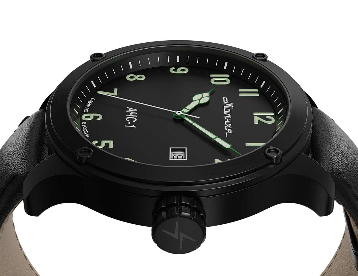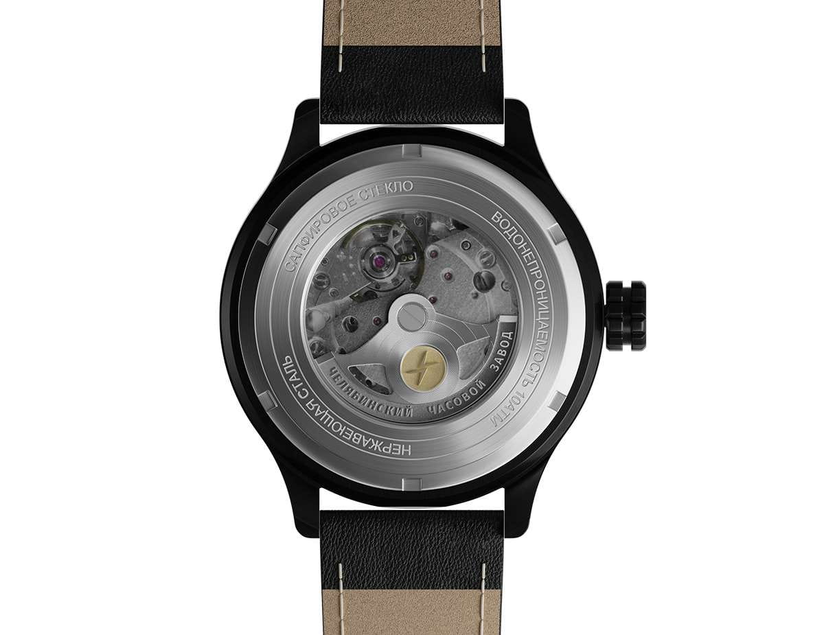 Мужские механические часы с автоподзаводом — это надёжный аксессуар от легендарного бренда «МОЛНИЯ», созданного на Челябинском часовом заводе. Корпус диаметром 44 мм и высотой 12 мм выполнен из нержавеющей стали 316L с IP-покрытиемIP-покрытиеМетод ионного напыления. Демонстрирует повышенную устойчивость к истиранию, окислению и химическим веществам. Под воздействием высокого давления и температуры около 1500°C молекулы металла надёжно соединяются с частицами корпуса часов.. Циферблат чёрного цвета матовый, оформлен стрелками и индексами с люминесцентным покрытиемЛюминесцентное покрытиеПозволяет считывать показания времени в темноте. Производители наносят на стрелки, часовые индексы, безель или поверхность циферблата светонакопительный состав, дающий холодное свечение. Super-LumiNova. Окошко даты расположено в положении 3 часов. Циферблат защищён сапфировым стекломСапфировое стеклоПрочный и надёжный материал из кристалла сапфира синтетического происхождения, характеризующийся особой твёрдостью и устойчивостью к царапинам и повреждениям. толщиной 1,5 мм. Механизм — японский автоматический калибр Miyota 8215 с функцией и запасом хода 42 часа. Часы оснащены кожаным ремешком чёрного цвета шириной 22 мм с классической пряжкой. Водонепроницаемость 100 м позволяет использовать часы для плавания и повседневного ношения. Идеальный выбор для тех, кто ценит российское качество и мужественный дизайн.