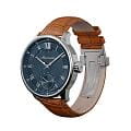 Мужские механические часы с ручным подзаводом — это аксессуар от легендарного бренда «МОЛНИЯ», созданный на Челябинском часовом заводе. Корпус диаметром 41 мм и толщиной 12 мм выполнен из нержавеющей стали 316L с зеркальной полировкой. БезельБезельВнешний ободок, закрепляющий стекло. В спортивных часах так называется поворотное кольцо с делениями на циферблате, выполняет роль таймера – замеряет отрезки времени на шкале. Неподвижный безель – элемент декора. Однонаправленно вращающийся безель на дайверских часах позволяет фиксировать моменты погружения и выныривания на поверхность. также выполнен из стали с зеркальной отделкой. Циферблат синего цвета оформлен римскими цифрами и стальными индексами. Малая секундная стрелка вынесена на позицию 6 часов. Циферблат защищён сапфировым стекломСапфировое стеклоПрочный и надёжный материал из кристалла сапфира синтетического происхождения, характеризующийся особой твёрдостью и устойчивостью к царапинам и повреждениям. толщиной 2,5 мм. Механизм — мануфактурный калибр 3603, собранный вручную, с запасом хода до 40 часов. Прозрачная задняя крышка позволяет наблюдать за работой механизма. Часы оснащены светло-коричневым кожаным ремешком шириной 20 мм с раскладной застёжкойРаскладная застёжкаТакой тип застёжки используется только на браслетах из металла. Она никогда не раскрывается полностью, происходит разделение на 2 и более частей. Раскладывающая застёжка снизит вероятность потери часов к минимуму. и системой быстрой замены. Водонепроницаемость 100 м позволяет использовать часы для плавания и повседневного ношения. Идеальный выбор для тех, кто ценит российское качество и традиции.