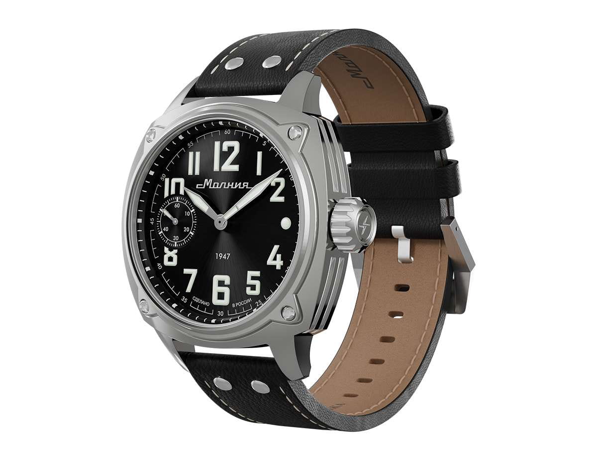Мужские механические часы с ручным подзаводом — это аксессуар от легендарного бренда «МОЛНИЯ», созданный на Челябинском часовом заводе. Корпус диаметром 42 мм выполнен из нержавеющей стали 316L с зеркальной полировкой. БезельБезельВнешний ободок, закрепляющий стекло. В спортивных часах так называется поворотное кольцо с делениями на циферблате, выполняет роль таймера – замеряет отрезки времени на шкале. Неподвижный безель – элемент декора. Однонаправленно вращающийся безель на дайверских часах позволяет фиксировать моменты погружения и выныривания на поверхность. также выполнен из стали с зеркальной отделкой. Циферблат чёрного цвета оформлен индексами и стрелками. Малая секундная стрелка вынесена на позицию 9 часов. Стрелки и метки с люминесцентным покрытиемЛюминесцентное покрытиеПозволяет считывать показания времени в темноте. Производители наносят на стрелки, часовые индексы, безель или поверхность циферблата светонакопительный состав, дающий холодное свечение. Super-LumiNova, обеспечивающим хорошую читаемость в темноте. Циферблат защищён сапфировым стекломСапфировое стеклоПрочный и надёжный материал из кристалла сапфира синтетического происхождения, характеризующийся особой твёрдостью и устойчивостью к царапинам и повреждениям. с антибликовым покрытиемАнтибликовое покрытиеСлой оксида металла в 0,13-0,3 микрон, благодаря которому стекло часов не бликует и не отражает свет. Антибликовое покрытие уменьшает отражение света в 10 раз, обеспечивая отличную читаемость показателей циферблата.. Механизм — мануфактурный калибр 3603, собранный вручную, с запасом хода до 40 часов. Прозрачная задняя крышка позволяет наблюдать за работой механизма. Часы оснащены кожаным ремешком чёрного цвета с белой отстрочкой и классической пряжкой. Водонепроницаемость 100 м позволяет использовать часы для плавания и повседневного ношения. Идеальный выбор для тех, кто ценит российское качество и традиции.