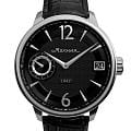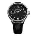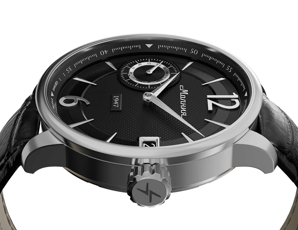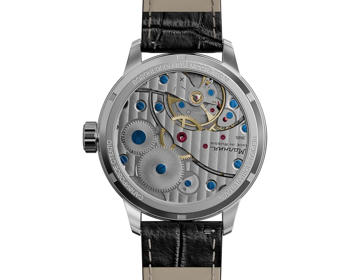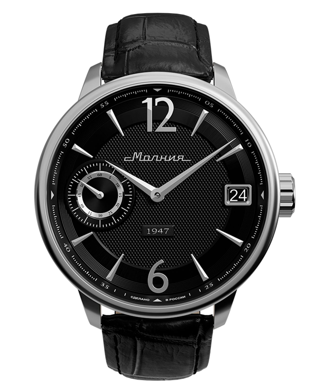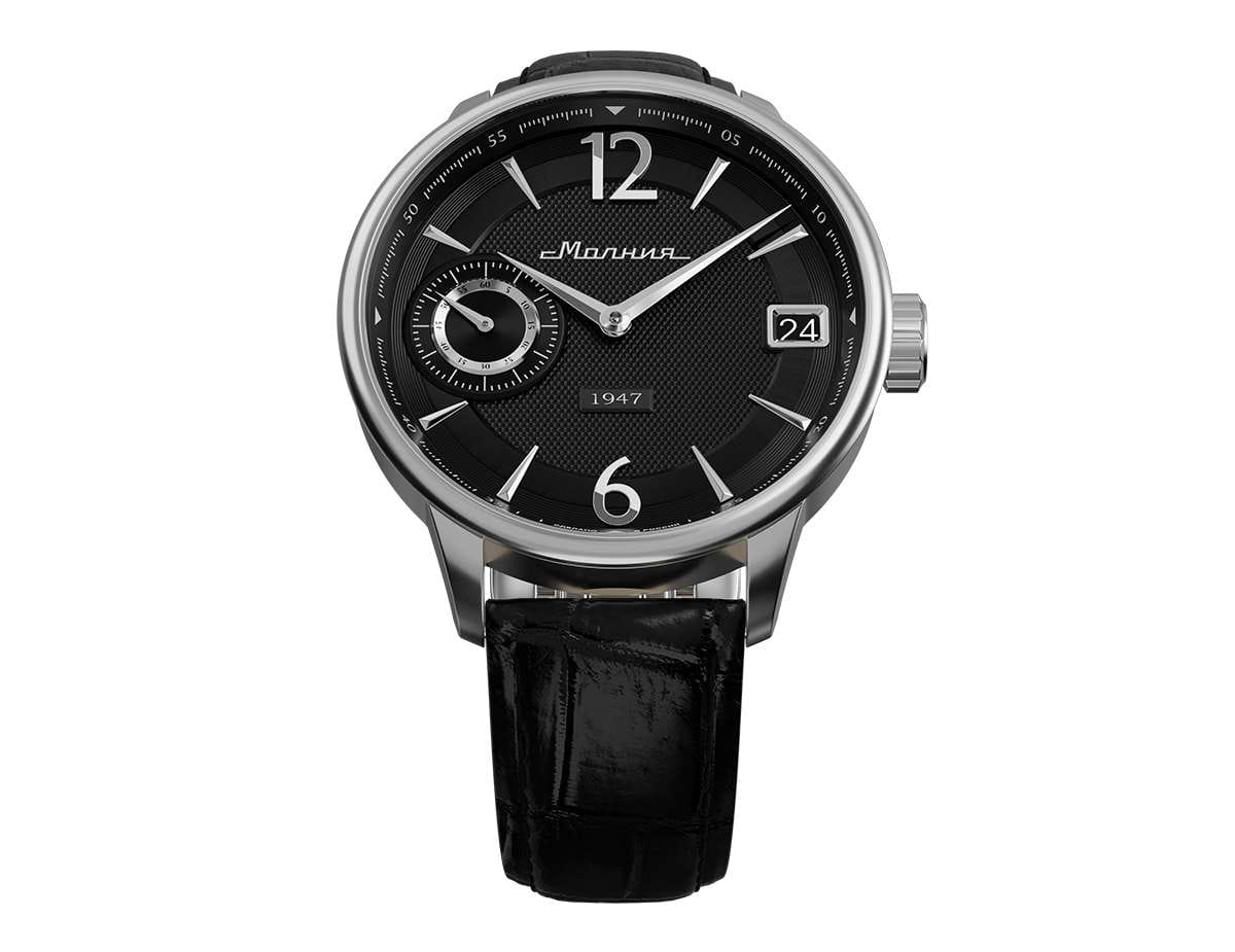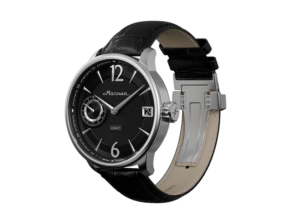 Мужские механические часы с ручным подзаводом — это аксессуар от легендарного бренда «МОЛНИЯ», созданный на Челябинском часовом заводе. Корпус диаметром 41 мм выполнен из нержавеющей стали 316L с зеркальной полировкой. Циферблат чёрного цвета оформлен арабскими цифрами и стальными индексами. Малая секундная стрелка вынесена на позицию 9 часов, окошко даты расположено в положении 3 часов. Циферблат защищён сапфировым стекломСапфировое стеклоПрочный и надёжный материал из кристалла сапфира синтетического происхождения, характеризующийся особой твёрдостью и устойчивостью к царапинам и повреждениям.. Механизм — мануфактурный калибр 3605, собранный вручную. Прозрачная задняя крышка позволяет наблюдать за работой механизма. Часы оснащены кожаным ремешком чёрного цвета с раскладной застёжкойРаскладная застёжкаТакой тип застёжки используется только на браслетах из металла. Она никогда не раскрывается полностью, происходит разделение на 2 и более частей. Раскладывающая застёжка снизит вероятность потери часов к минимуму. и системой быстрой замены. Водонепроницаемость 100 м позволяет использовать часы для плавания и повседневного ношения. Идеальный выбор для тех, кто ценит российское качество и традиции.