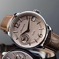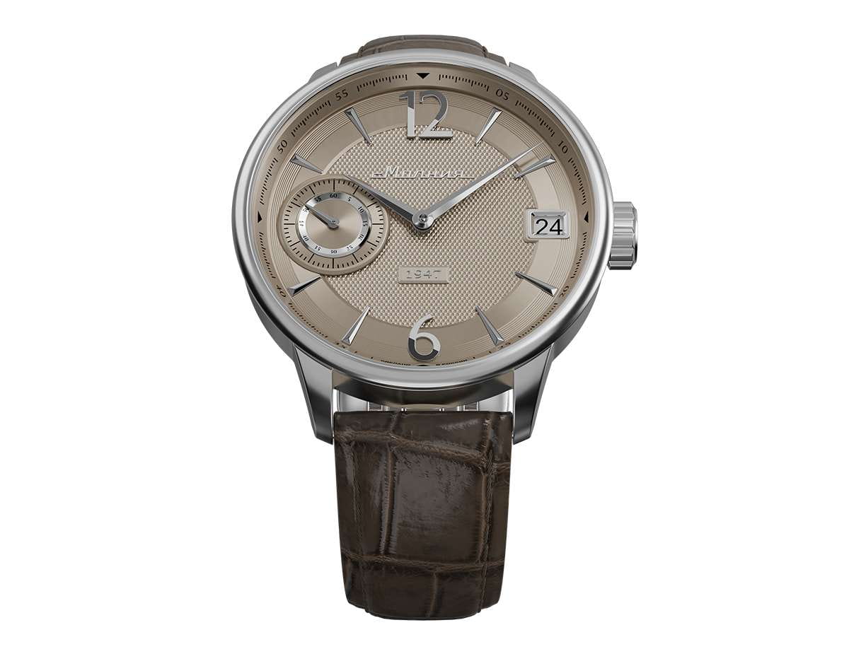 Мужские механические часы с ручным подзаводом — это аксессуар от легендарного бренда «МОЛНИЯ», созданный на Челябинском часовом заводе. Корпус диаметром 41 мм выполнен из нержавеющей стали 316L с зеркальной полировкой. Циферблат бежевого цвета оформлен арабскими цифрами и стальными индексами. Малая секундная стрелка вынесена на позицию 9 часов, окошко даты расположено в положении 3 часов. Циферблат защищён сапфировым стекломСапфировое стеклоПрочный и надёжный материал из кристалла сапфира синтетического происхождения, характеризующийся особой твёрдостью и устойчивостью к царапинам и повреждениям.. Механизм — мануфактурный калибр 3605, собранный вручную, с запасом хода до 40 часов. Прозрачная задняя крышка позволяет наблюдать за работой механизма. Часы оснащены кожаным ремешком коричневого цвета с раскладной застёжкойРаскладная застёжкаТакой тип застёжки используется только на браслетах из металла. Она никогда не раскрывается полностью, происходит разделение на 2 и более частей. Раскладывающая застёжка снизит вероятность потери часов к минимуму. и системой быстрой замены. Водонепроницаемость 100 м позволяет использовать часы для плавания и повседневного ношения. Идеальный выбор для тех, кто ценит российское качество и традиции.