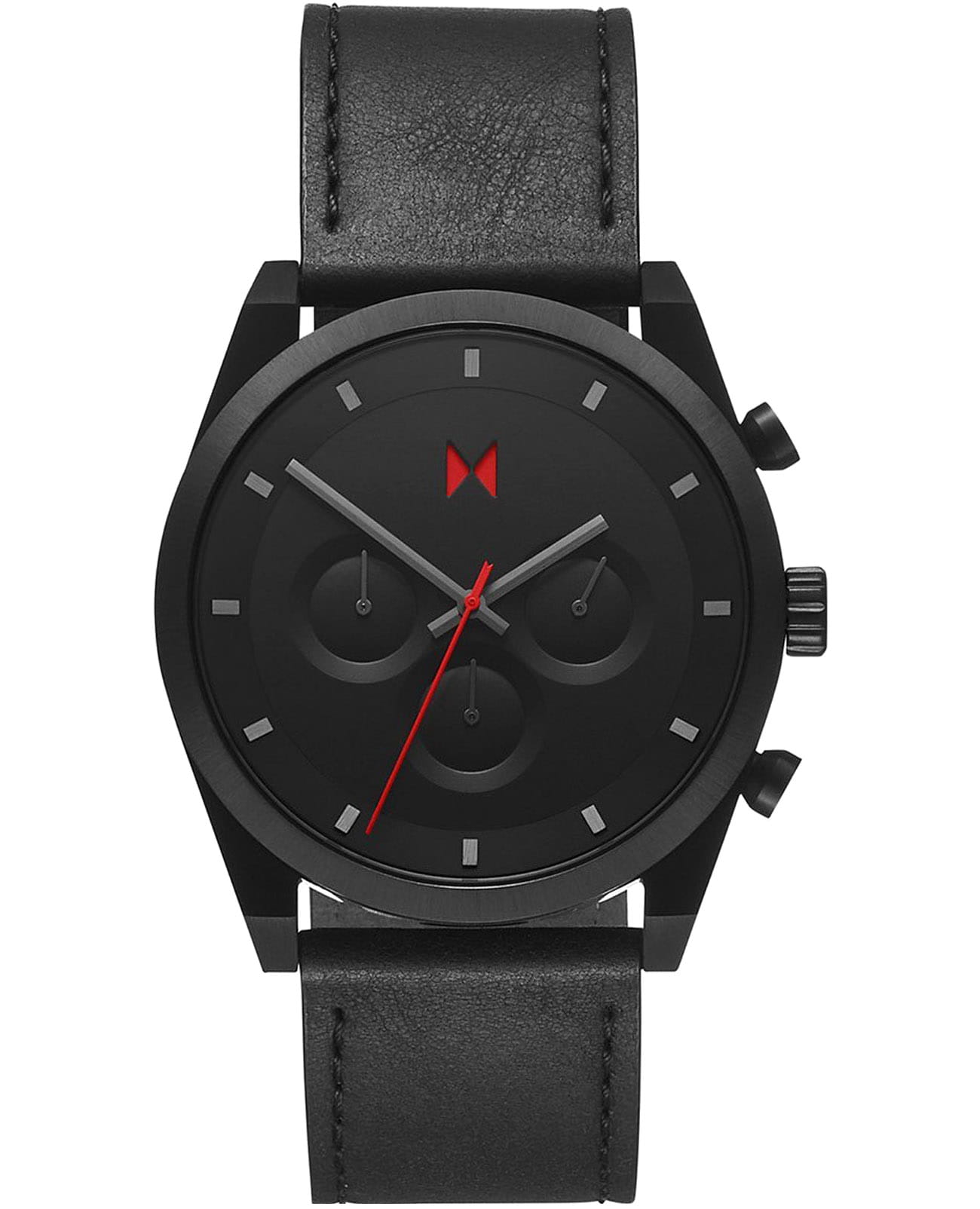 Мужские кварцевые часы-хронографХронографФункция позволяет измерять отрезки времени с особой точностью: часы, минуты, секунды. Верным признаком хронографа является наличие на циферблате 3 дополнительных окошек-счётчиков. с секундомеромСекундомерСекундоме́р — прибор, способный измерять интервалы времени с точностью до долей секунды. MVMT 28000045-D – лаконичная красота и изысканная элегантность. Оригинальная модель с классическим оформлением станет превосходным завершением образа, наделив его индивидуальным характером. Корпус выполнен из нержавеющей стали с IP-покрытиемIP-покрытиеМетод ионного напыления. Демонстрирует повышенную устойчивость к истиранию, окислению и химическим веществам. Под воздействием высокого давления и температуры около 1500°C молекулы металла надёжно соединяются с частицами корпуса часов. черного цвета, диаметром 44 мм и толщиной 10,5 мм, что обеспечивает долговечность и утончённый внешний вид. Закаленное минеральное стеклоМинеральное стеклоМинеральное стекло представляет собой искусственно выращенный минерал кварца. Такое стекло отличается особой устойчивостью к повреждениям и царапинам. Уступает по некоторым качествам сапфировому стеклу. защищает циферблат от царапин. Кожаный ремешок на стандартной застёжке обеспечивает комфортное ношение. Водозащита 50 метров позволит защитить корпус от случайных брызг или капель дождя. Индикатор 24-х часов вынесен на отдельный циферблат, счетчики на 30 минут и 60 секунд. Рифленая заводная головка с защитой. Это аксессуар для мужчины, который ценит классический стиль и функциональность.