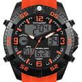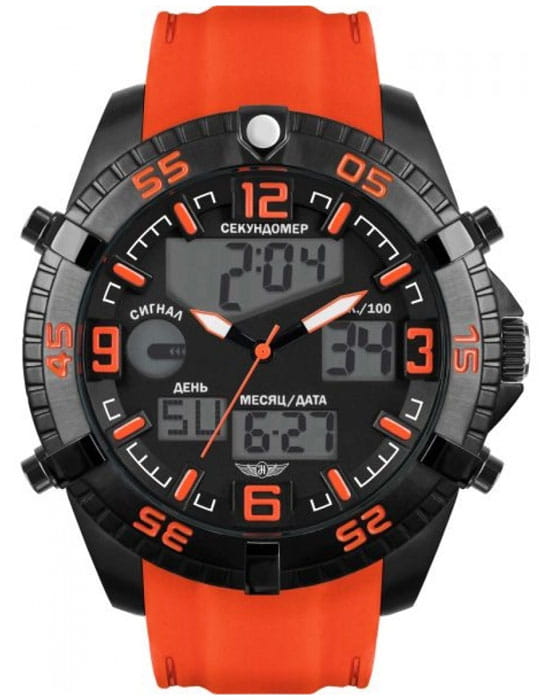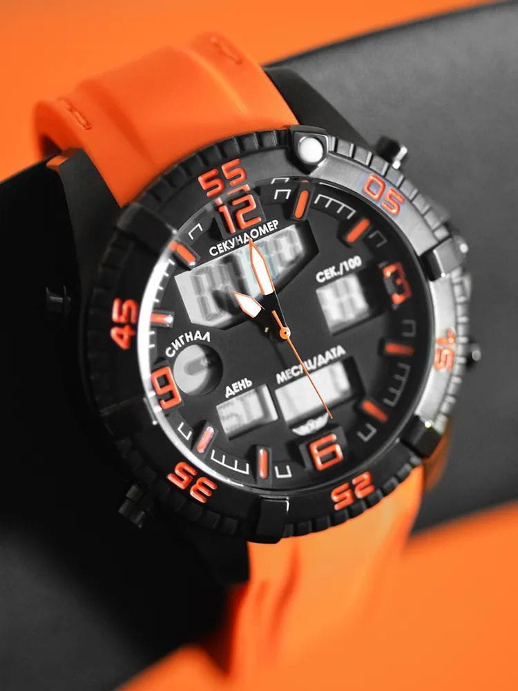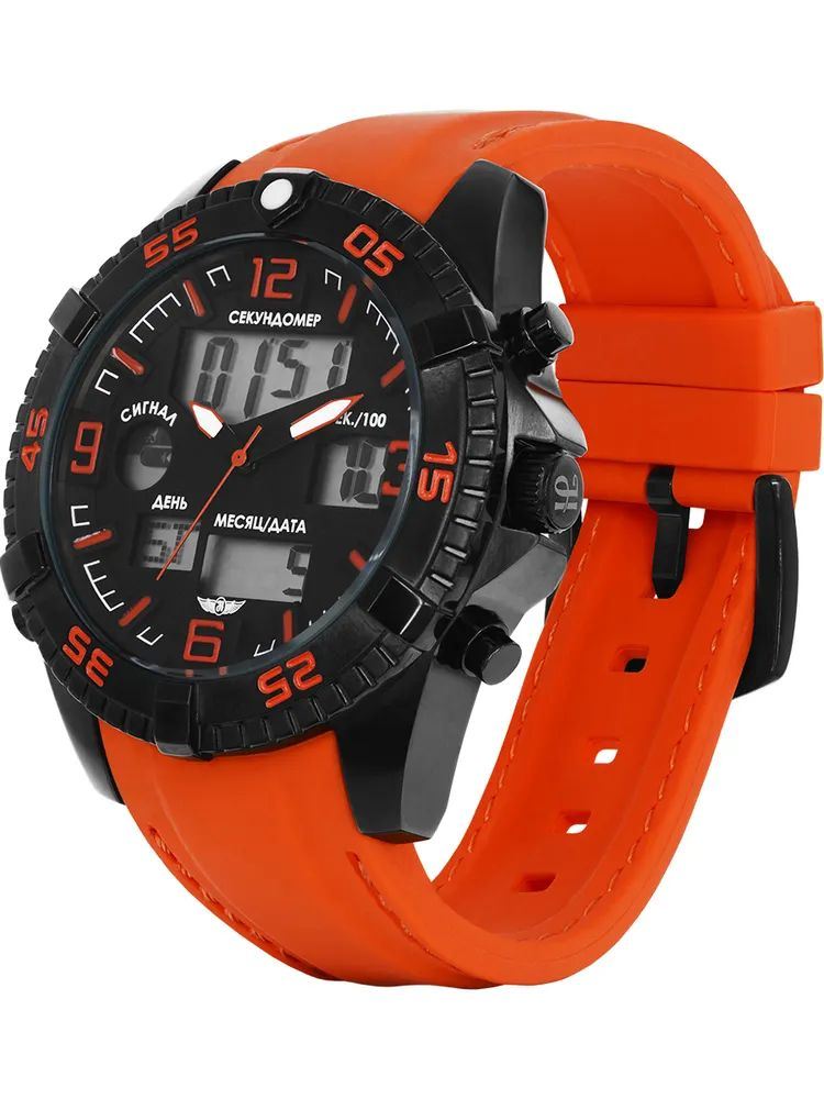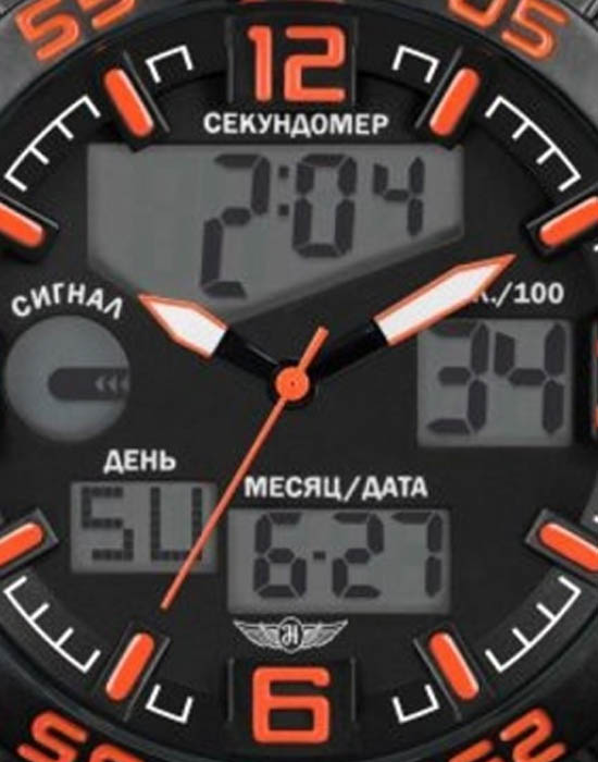 Часы оснащены японским кварцевым механизмом с аналогово-цифровой индикацией, обеспечивая точный ход и дополнительные возможности измерения времени. Циферблат защищён минеральным стекломМинеральное стеклоМинеральное стекло представляет собой искусственно выращенный минерал кварца. Такое стекло отличается особой устойчивостью к повреждениям и царапинам. Уступает по некоторым качествам сапфировому стеклу., устойчивым к царапинам. Установлена классическая застёжка-пряжка, обеспечивая надёжную фиксацию на запястье. Модель обладает водонепроницаемостью до 100 метров, что делает её подходящей для плавания и сноркелинга.