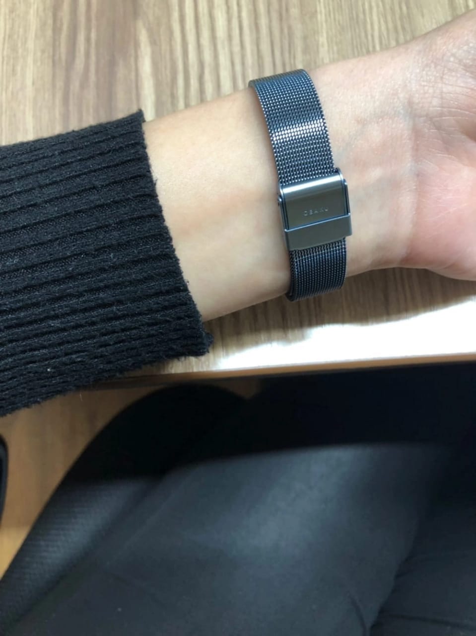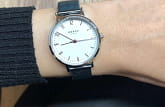 Минималистичный дизайн, крупные числа на циферблате, лёгкая защита от воды (капли, брызги), полностью стальные.