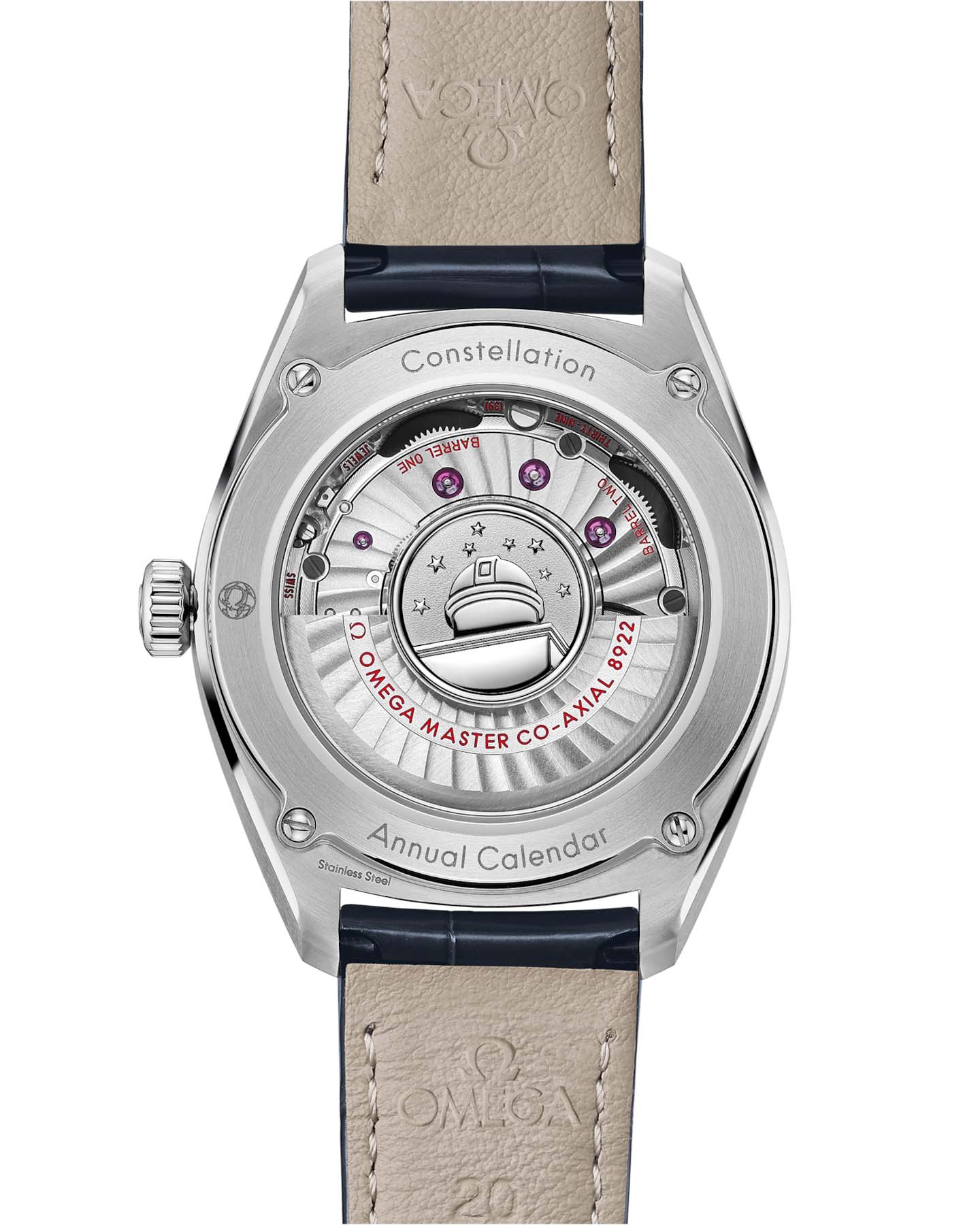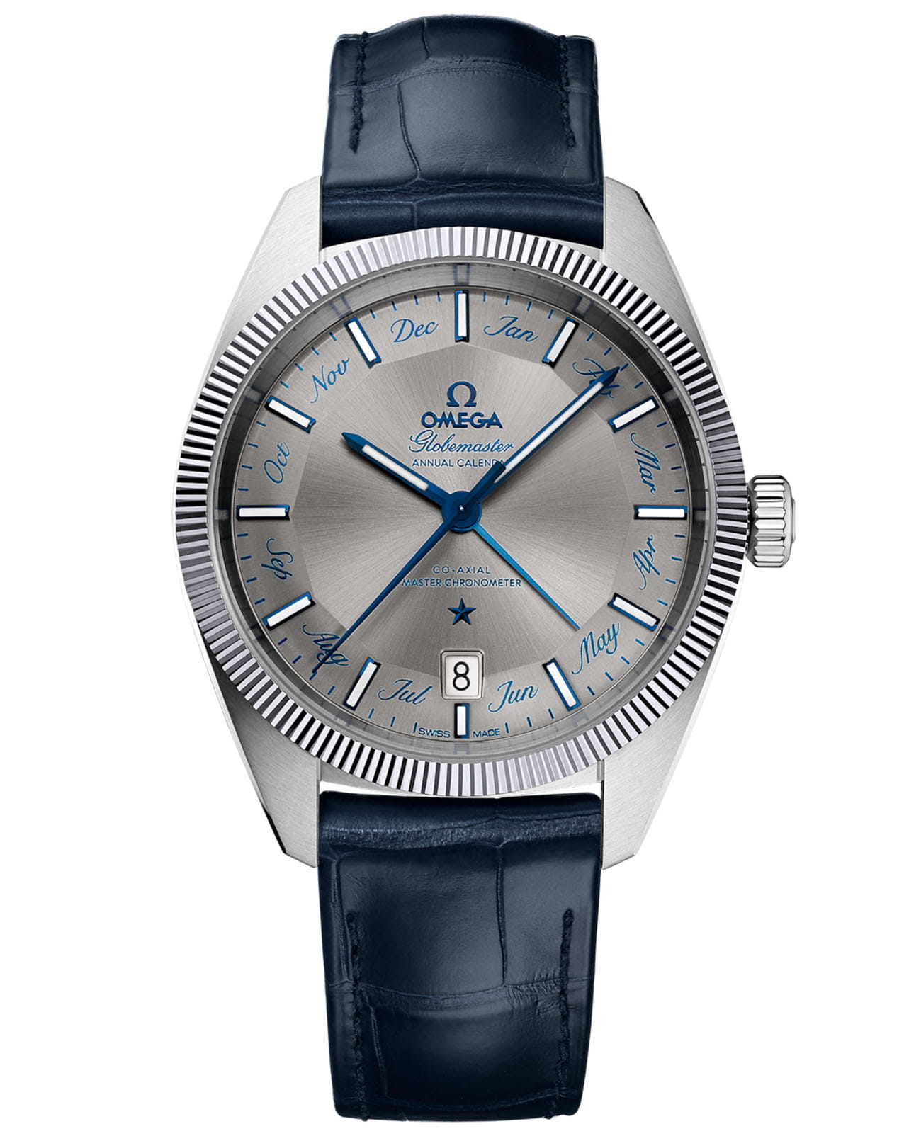 Модель Globemaster уже стала легендарной в семействе OMEGA. Теперь она была обновлена и стала первым в мире Master Chronometer, что еще больше укрепило ее репутацию в часовой индустрии. Корпус модели диаметром 41,00 мм из нержавеющей стали оснащен безелемБезельВнешний ободок, закрепляющий стекло. В спортивных часах так называется поворотное кольцо с делениями на циферблате, выполняет роль таймера – замеряет отрезки времени на шкале. Неподвижный безель – элемент декора. Однонаправленно вращающийся безель на дайверских часах позволяет фиксировать моменты погружения и выныривания на поверхность. из твердого металла (карбида вольфрама). На задней крышке - медальон Центральной обсерватории, помещенный в устойчивое к царапинам сапфировое стеклоСапфировое стеклоПрочный и надёжный материал из кристалла сапфира синтетического происхождения, характеризующийся особой твёрдостью и устойчивостью к царапинам и повреждениям.. Серый циферблат «Pie Pan» с солнечной матовой отделкой напоминает первую модель 1952 года Constellation. Каждая из его граней включает месяц года в соответствии с функцией годового календаряВечный календарьКлассическое часовое усложнение, представляющее собой календарь, рассчитанный на несколько лет вперёд (стандартно – до 2099 года). Определяет текущую дату, день недели, месяц.. Вороненая звезда Constellation и логотип OMEGA, а также вороненые граненые стрелки и индексы, покрытые люминесцентным составомЛюминесцентное покрытиеПозволяет считывать показания времени в темноте. Производители наносят на стрелки, часовые индексы, безель или поверхность циферблата светонакопительный состав, дающий холодное свечение.. Часы с синим кожаным ремешком оснащены коаксиальным хронометром OMEGA Master Chronometer Annual Calendar Calibre 8922, в котором реализована революционная антимагнитная технология.