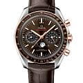 Speedmaster Moonphase в благородном золото-коричневом исполнении продолжает легендарную историю шести лунных миссий OMEGA. 44,25-мм корпус из нержавеющей стали и 18-каратного золота Sedna™18-каратное золотоОбозначение по каратной системе пробирования, оно показывает, сколько драгоценного металла содержится в изделии. 18 карат - в составе 75% чистого золота, соответствует 750 пробе.