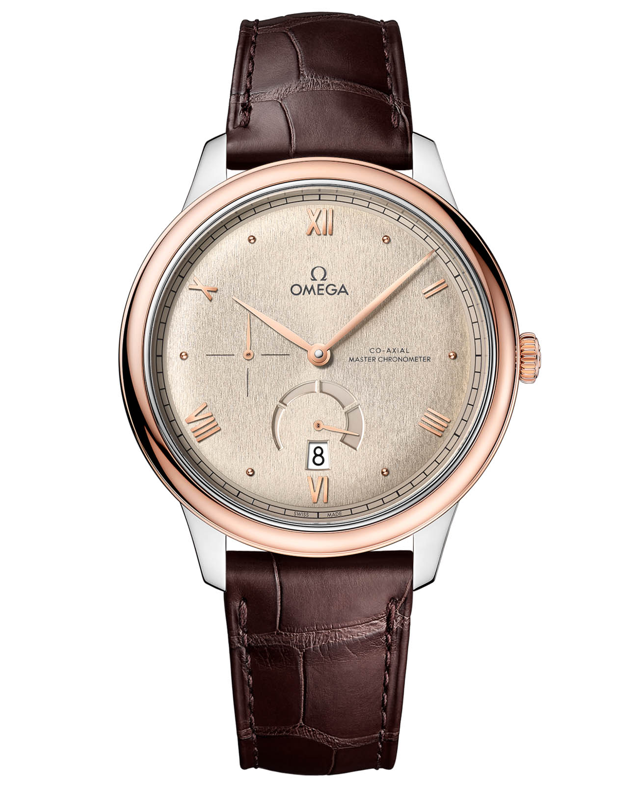 270-градусный индикатор запаса хода расположен в положении "6 часов". Он имеет двухслойную конструкцию в форме полумесяца, состоящую из нижней пластины с изящной контрастной отделкой, выполненной в одной цветовой гамме, и верхней пластины с 4-я секторальными прорезями. Изделие с лаконичным дизайном дополнено окошком указателя даты в положении «6 часов», счетчиком малой секундной стрелки в положении «9 часов» и минутной шкалой в стиле «железная дорога» на внешнем секторе. Часы с сертификатом Master Chronometer представлены с кожаным ремешком коричневого цвета. Модель оснащена калибром OMEGA Master Co-Axial 8810, который виден сквозь устойчивое к царапинам сапфировое стеклоСапфировое стеклоПрочный и надёжный материал из кристалла сапфира синтетического происхождения, характеризующийся особой твёрдостью и устойчивостью к царапинам и повреждениям. задней крышки корпуса.