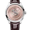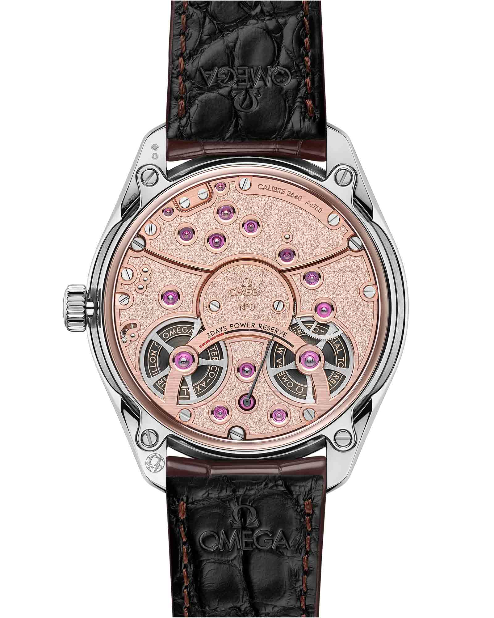 Эти часы, выпущенные в ограниченной пронумерованной серии, созданы командой мастеров OMEGA из Atelier Tourbillon в Швейцарии. Изготовленные из самых современных сплавов, они стали настоящими произведениями часового искусства. Сатинированный корпус диаметром 43 мм выполнен из 18-каратного золота Canopus Gold™18-каратное золотоОбозначение по каратной системе пробирования, оно показывает, сколько драгоценного металла содержится в изделии. 18 карат - в составе 75% чистого золота, соответствует 750 пробе.