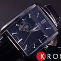 Классические японские наручные мужские часы. Механические, с автоподзаводом. Прямоугольный корпус часов полностью выполнены из высокопрочной стали с антикоррозийными свойствами с полным PVD покрытием.  Водонепроницаемость часов составляет 5 ATM. Минеральное стекло, устойчивое к появлению царапин. Ремешок выполнен из натуральной кожи черного цвета.