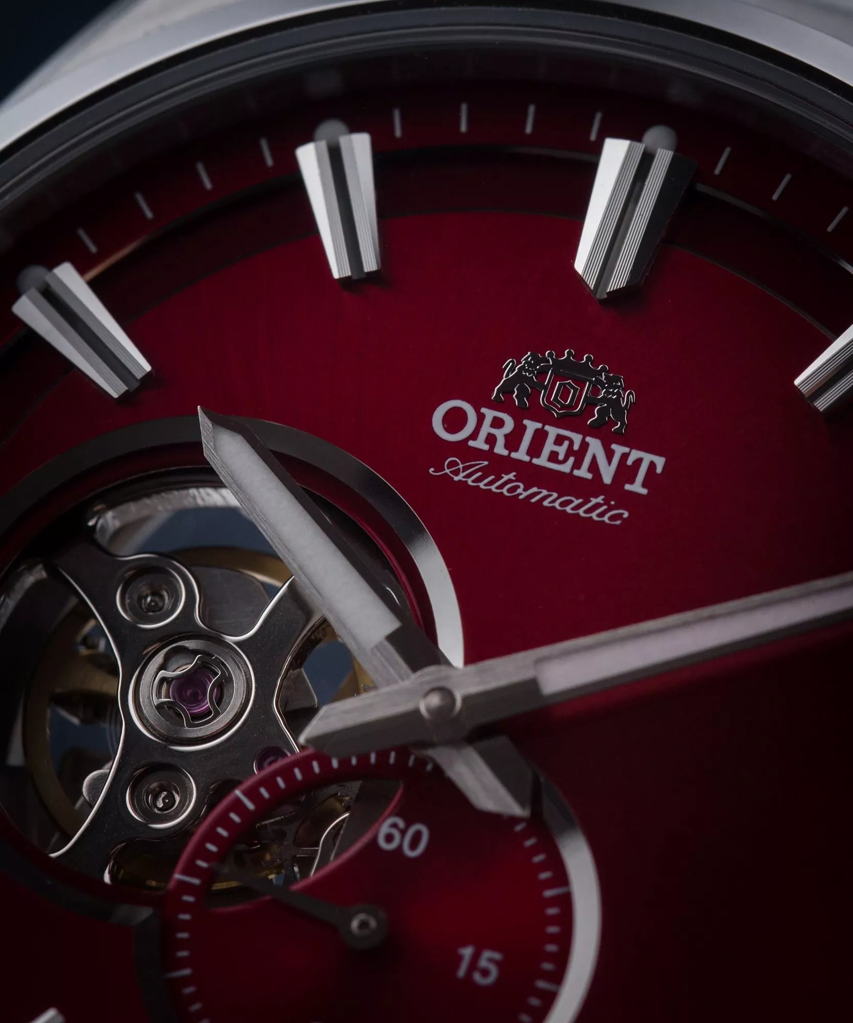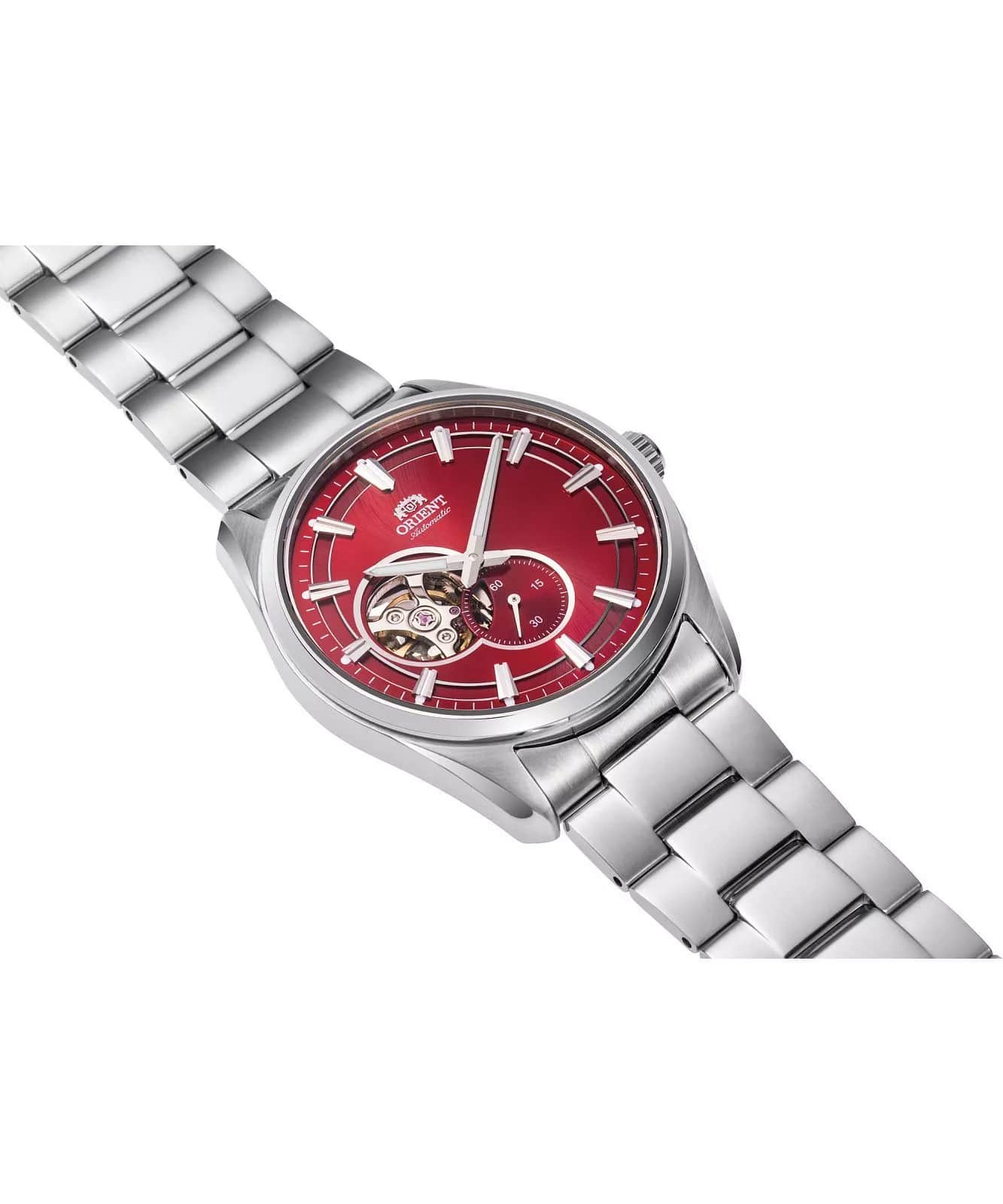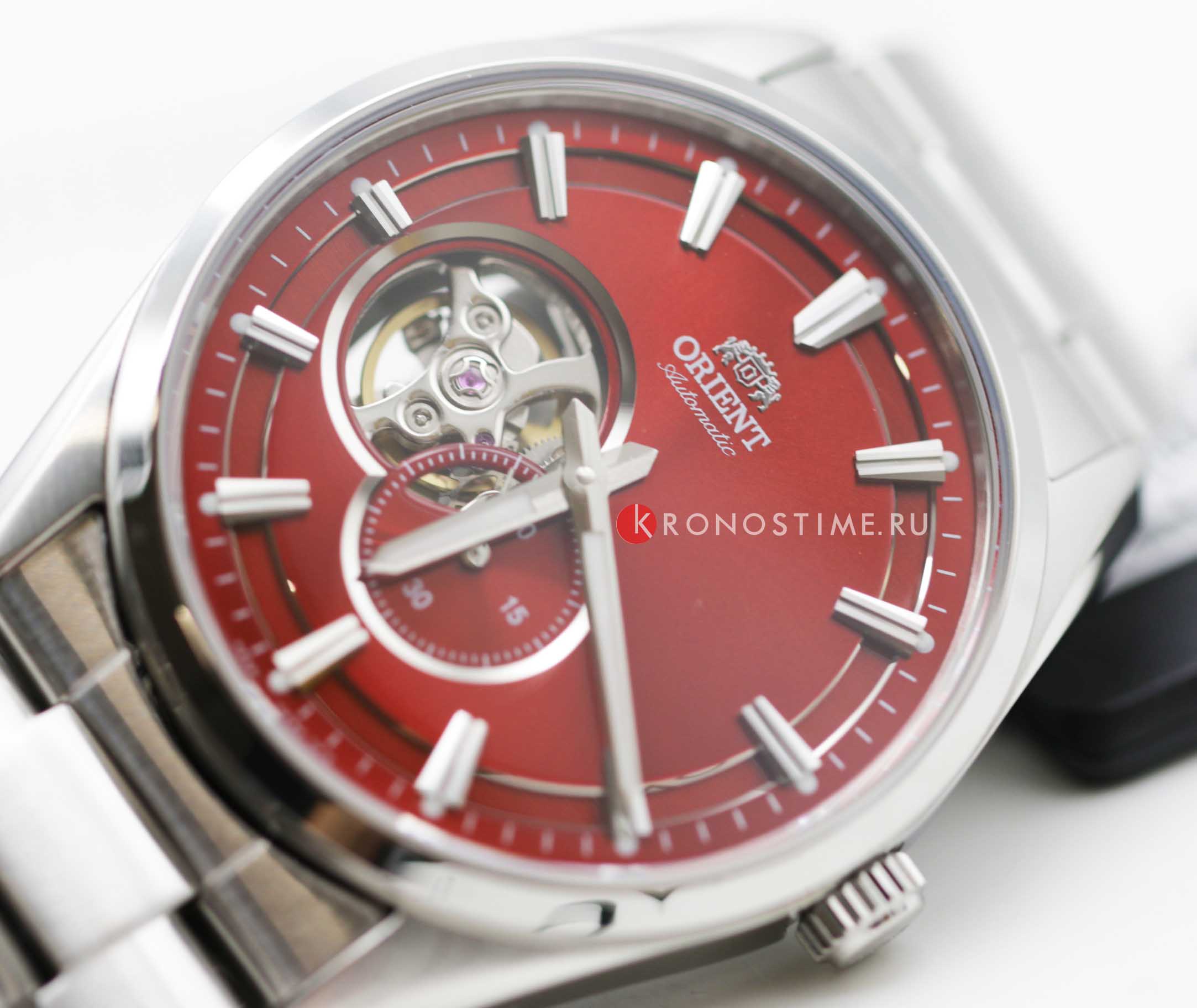 Часы Orient RN-AR0010R представляют собой модель из коллекции Contemporary, сочетающую в себе современный дизайн и функциональность. Это мужские механические часы с автоподзаводом, оснащённые калибром F6S22, который обеспечивает точность хода в пределах +25/-15 секунд в сутки и запас хода до 40 часов. Часы также поддерживают функцию ручного подзавода и остановки секундной стрелки (hacking stop), что позволяет точно синхронизировать время . Корпус часов выполнен из нержавеющей стали (SUS316L) и имеет диаметр 40,8 мм при толщине 10,9 мм. Водонепроницаемость модели составляет 50 метров, что защищает часы от случайных брызг или капель дождя, но не предназначено для плавания или дайвинга. Часы оснащены сапфировым стекломСапфировое стеклоПрочный и надёжный материал из кристалла сапфира синтетического происхождения, характеризующийся особой твёрдостью и устойчивостью к царапинам и повреждениям., устойчивым к царапинам, и винтовой задней крышкой с прозрачным окном, позволяющим наблюдать за работой механизма. Циферблат выполнен в красном цвете с полускелетонным дизайном, который открывает вид на механизм в области 9 часов. На циферблате расположены светящиеся метки и стрелки с люминесцентным покрытиемЛюминесцентное покрытиеПозволяет считывать показания времени в темноте. Производители наносят на стрелки, часовые индексы, безель или поверхность циферблата светонакопительный состав, дающий холодное свечение., обеспечивающие хорошую видимость в темноте. Также предусмотрено окно малой секундной стрелки на позиции 6 часов, что добавляет часам уникальный и стильный вид . Браслет часов изготовлен из нержавеющей стали и имеет ширину 22 мм. Застёжка выполнена в виде трёхзвенной складной конструкции с кнопочным замком, что обеспечивает надёжную фиксацию на запястье.