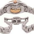 Женские механические часы с автоподзаводом Orient Star — изящный скелетон в японском исполнении. Корпус из нержавеющей стали. БезельБезельВнешний ободок, закрепляющий стекло. В спортивных часах так называется поворотное кольцо с делениями на циферблате, выполняет роль таймера – замеряет отрезки времени на шкале. Неподвижный безель – элемент декора. Однонаправленно вращающийся безель на дайверских часах позволяет фиксировать моменты погружения и выныривания на поверхность. из нержавеющей стали с IP-покрытиемIP-покрытиеМетод ионного напыления. Демонстрирует повышенную устойчивость к истиранию, окислению и химическим веществам. Под воздействием высокого давления и температуры около 1500°C молекулы металла надёжно соединяются с частицами корпуса часов. цвета розового золота, диаметром 30 мм. Циферблат — серебристый, с текстурой Sunray, штриховыми метками и кристаллом на отметке 12; сквозь прозрачное окошко виден баланс механизма. Стекло — сапфировоеСапфировое стеклоПрочный и надёжный материал из кристалла сапфира синтетического происхождения, характеризующийся особой твёрдостью и устойчивостью к царапинам и повреждениям. с антибликовым покрытием. Браслет — стальной 316L на раскладной застёжкеРаскладная застёжкаТакой тип застёжки используется только на браслетах из металла. Она никогда не раскрывается полностью, происходит разделение на 2 и более частей. Раскладывающая застёжка снизит вероятность потери часов к минимуму.. Водонепроницаемость 50 м. Идеальный выбор для тех, кто ценит японское качество и утончённый дизайн.