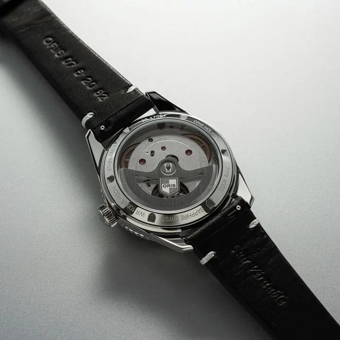 Многокомпонентный корпус из нержавеющей стали, вращающийся безельБезельВнешний ободок, закрепляющий стекло. В спортивных часах так называется поворотное кольцо с делениями на циферблате, выполняет роль таймера – замеряет отрезки времени на шкале. Неподвижный безель – элемент декора. Однонаправленно вращающийся безель на дайверских часах позволяет фиксировать моменты погружения и выныривания на поверхность. . Сапфировое стеклоСапфировое стеклоПрочный и надёжный материал из кристалла сапфира синтетического происхождения, характеризующийся особой твёрдостью и устойчивостью к царапинам и повреждениям., выпуклое с обеих сторон, внутреннее антибликовое покрытие. Прозрачная задняя крышка из сапфирового стеклаСапфировое стеклоПрочный и надёжный материал из кристалла сапфира синтетического происхождения, характеризующийся особой твёрдостью и устойчивостью к царапинам и повреждениям.. Стрелки и метки с люминесцентным покрытиемЛюминесцентное покрытиеПозволяет считывать показания времени в темноте. Производители наносят на стрелки, часовые индексы, безель или поверхность циферблата светонакопительный состав, дающий холодное свечение.. Завинчивающаяся заводная головка.