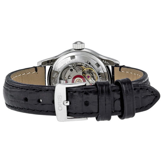 Oris 01 561 7650 4034-07 5 14 11 – это элегантные часы, сочетающие в себе классический дизайн и современную функциональность. Корпус из нержавеющей стали диаметром 28,50 мм идеально подходит для тех, кто ценит утонченность и стиль. Сапфировое стеклоСапфировое стеклоПрочный и надёжный материал из кристалла сапфира синтетического происхождения, характеризующийся особой твёрдостью и устойчивостью к царапинам и повреждениям. с антибликовым покрытием защищает циферблат от царапин и обеспечивает отличную читаемость при любом освещении. Ремешок из высококачественной кожи идеально дополняют дизайн часов, обеспечивая комфортное ношение. Стрелки на циферблате имеют люминесцентное покрытиеЛюминесцентное покрытиеПозволяет считывать показания времени в темноте. Производители наносят на стрелки, часовые индексы, безель или поверхность циферблата светонакопительный состав, дающий холодное свечение., позволяющее легко определять время даже в темноте. Часы оснащены центральной секундной стрелкой и окошком даты в положении «6 часов», что делает их функциональными для повседневного использования. Часы обладают водонепроницаемостью в 5 бар (50 метров). Механизм с автоподзаводом, скрытый внутри, является сердцем этих часов, гарантируя безупречную работу на протяжении многих лет.