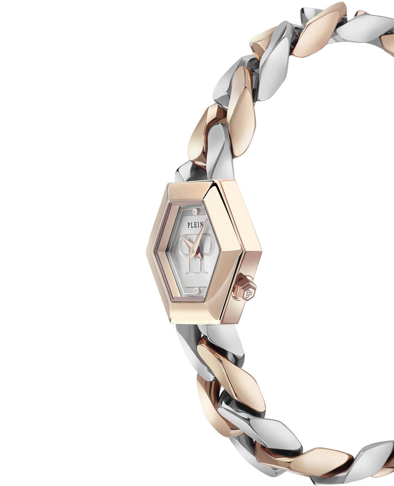 Стильные женские часы Philipp Plein The Hexagon PWWBA0223 с надежным кварцевым механизмом. Корпус и браслет часов изготовлены из нержавеющей стали с IP-покрытиемIP-покрытиеМетод ионного напыления. Демонстрирует повышенную устойчивость к истиранию, окислению и химическим веществам. Под воздействием высокого давления и температуры около 1500°C молекулы металла надёжно соединяются с частицами корпуса часов.. Минеральное стеклоМинеральное стеклоМинеральное стекло представляет собой искусственно выращенный минерал кварца. Такое стекло отличается особой устойчивостью к повреждениям и царапинам. Уступает по некоторым качествам сапфировому стеклу. устойчивое к мелким механическим повреждениям. Влагозащита: 50 метров, позволит защитить корпус от случайных брызг или капель дождя. Циферблат инкрустирован кристаллами Preciosa.
