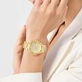 Женские кварцевые часы Philipp Plein Plein Royal Prestige PW4FA0525 — это стильное сочетание элегантности и современного дизайна. Изящный корпус выполнен из нержавеющей стали с PVD-покрытиемPVDУльтратонкое покрытие наносится в технике вакуумного напыления, сочетает в себе нитрид титана особой прочности со слоем золота или оксида хрома. Несёт в себе декоративную или защитную функцию. золотистого цвета, диаметром 33 мм, что придаст образу женственности и романтизма. Изысканный циферблат с метками в виде штрихов придает модели особый блеск. Циферблат защищен минеральным стекломМинеральное стеклоМинеральное стекло представляет собой искусственно выращенный минерал кварца. Такое стекло отличается особой устойчивостью к повреждениям и царапинам. Уступает по некоторым качествам сапфировому стеклу., обеспечивающий устойчивость к царапинам. БезельБезельВнешний ободок, закрепляющий стекло. В спортивных часах так называется поворотное кольцо с делениями на циферблате, выполняет роль таймера – замеряет отрезки времени на шкале. Неподвижный безель – элемент декора. Однонаправленно вращающийся безель на дайверских часах позволяет фиксировать моменты погружения и выныривания на поверхность. украшен винтами, а циферблат украшен кристаллами. Стрелки с люминесцентным покрытиемЛюминесцентное покрытиеПозволяет считывать показания времени в темноте. Производители наносят на стрелки, часовые индексы, безель или поверхность циферблата светонакопительный состав, дающий холодное свечение.. Часы оснащены надежным кварцевым механизмом. Стальной браслет с PVD-покрытиемPVDУльтратонкое покрытие наносится в технике вакуумного напыления, сочетает в себе нитрид титана особой прочности со слоем золота или оксида хрома. Несёт в себе декоративную или защитную функцию. на застёжке-бабочке с кнопкамиЗастёжка "бабочка"Такой вид застёжки дополняется предохранителями, помогающими избежать случайного раскрытия браслета. Обладают изящным исполнением. , гарантирует комфортное и безопасное ношение. Класс водозащиты: 50 метров позволит защитить корпус от случайных брызг или капель дождя. Phlipp Plein — отличный выбор для тех, кто ценит яркость и качество.