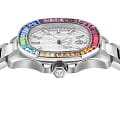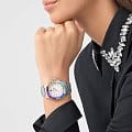 Philipp Plein THE $PECTRE LADY PWTAA1124 - дерзкое заявление любви к роскоши и бунтарскому стилю. Диаметр корпуса из прочной нержавеющей стали равен 38 мм. Стальной браслет на застёжке-бабочке с кнопкамиЗастёжка "бабочка"Такой вид застёжки дополняется предохранителями, помогающими избежать случайного раскрытия браслета. Обладают изящным исполнением. обеспечивает надёжную фиксацию и комфортное ношение. Минеральное стеклоМинеральное стеклоМинеральное стекло представляет собой искусственно выращенный минерал кварца. Такое стекло отличается особой устойчивостью к повреждениям и царапинам. Уступает по некоторым качествам сапфировому стеклу. защищает циферблат от царапин. Люминесцентное покрытиеЛюминесцентное покрытиеПозволяет считывать показания времени в темноте. Производители наносят на стрелки, часовые индексы, безель или поверхность циферблата светонакопительный состав, дающий холодное свечение. стрелок и меток позволит следить за временем даже в полной темноте. БезельБезельВнешний ободок, закрепляющий стекло. В спортивных часах так называется поворотное кольцо с делениями на циферблате, выполняет роль таймера – замеряет отрезки времени на шкале. Неподвижный безель – элемент декора. Однонаправленно вращающийся безель на дайверских часах позволяет фиксировать моменты погружения и выныривания на поверхность. инкрустирован кристаллами Preciosa. Влагозащита: 50 метров, позволит защитить корпус от случайных брызг или капель дождя. Идеальный аксессуар для тех, кто ценит индивидуальность и не боится выделяться из толпы.