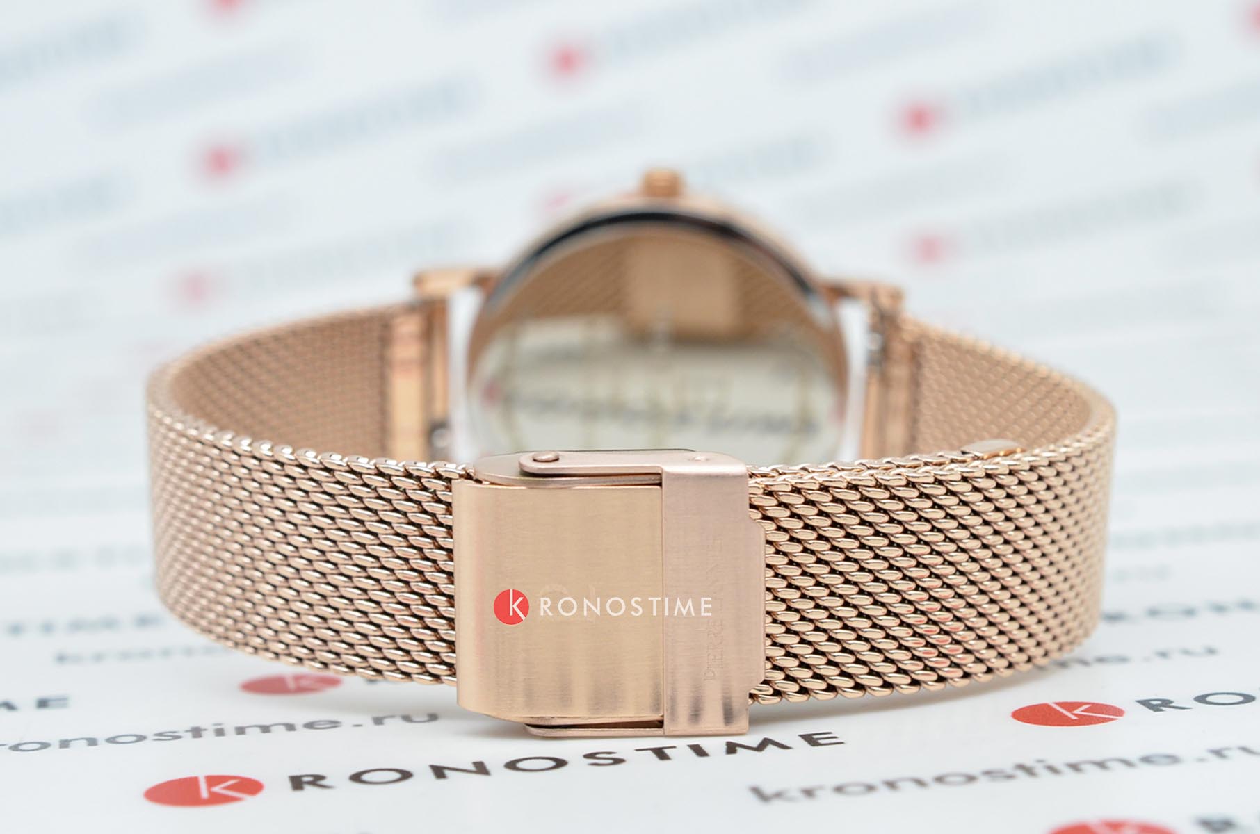 Женские кварцевые часы Pierre Lannier 010P988 — это стильный аксессуар, созданный в Франции и сочетающий элегантность с функциональностью. Модель оснащена калибром с автоподзаводом и имеет центральные часовые стрелки, что обеспечивает чёткое отображение времени. Корпус круглой формы выполнен из нержавеющей стали с IP-покрытиемIP-покрытиеМетод ионного напыления. Демонстрирует повышенную устойчивость к истиранию, окислению и химическим веществам. Под воздействием высокого давления и температуры около 1500°C молекулы металла надёжно соединяются с частицами корпуса часов. цвета розового золота, что придаёт ему благородный внешний вид и устойчивость к царапинам. Диаметр корпуса составляет 30 мм. Циферблат коричневого цвета дополнен прочным минеральным стекломМинеральное стеклоМинеральное стекло представляет собой искусственно выращенный минерал кварца. Такое стекло отличается особой устойчивостью к повреждениям и царапинам. Уступает по некоторым качествам сапфировому стеклу., устойчивым к повседневным нагрузкам. Браслет шириной 14 мм изготовлен из стали с покрытием и выполнен в технике миланского плетения, а его раскладная застёжка обеспечивает комфорт и надёжную фиксацию на запястье. Водонепроницаемость позволяет использовать модель при мытье рук или под лёгким дождём. Эти часы станут универсальным аксессуаром для повседневной носки и торжественных случаев — идеальный выбор для женщин, которые ценят сочетание стиля, качества и французского мастерства.