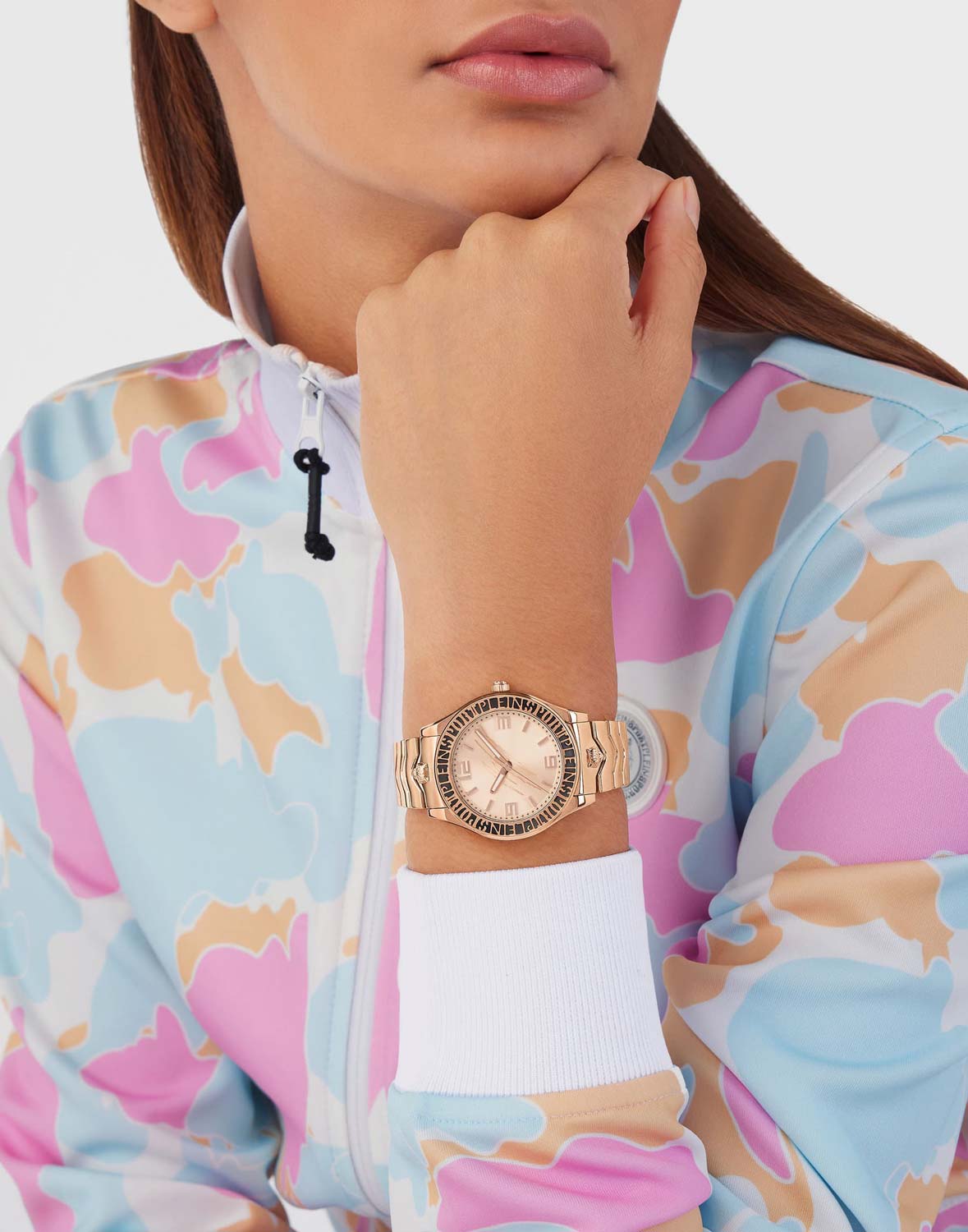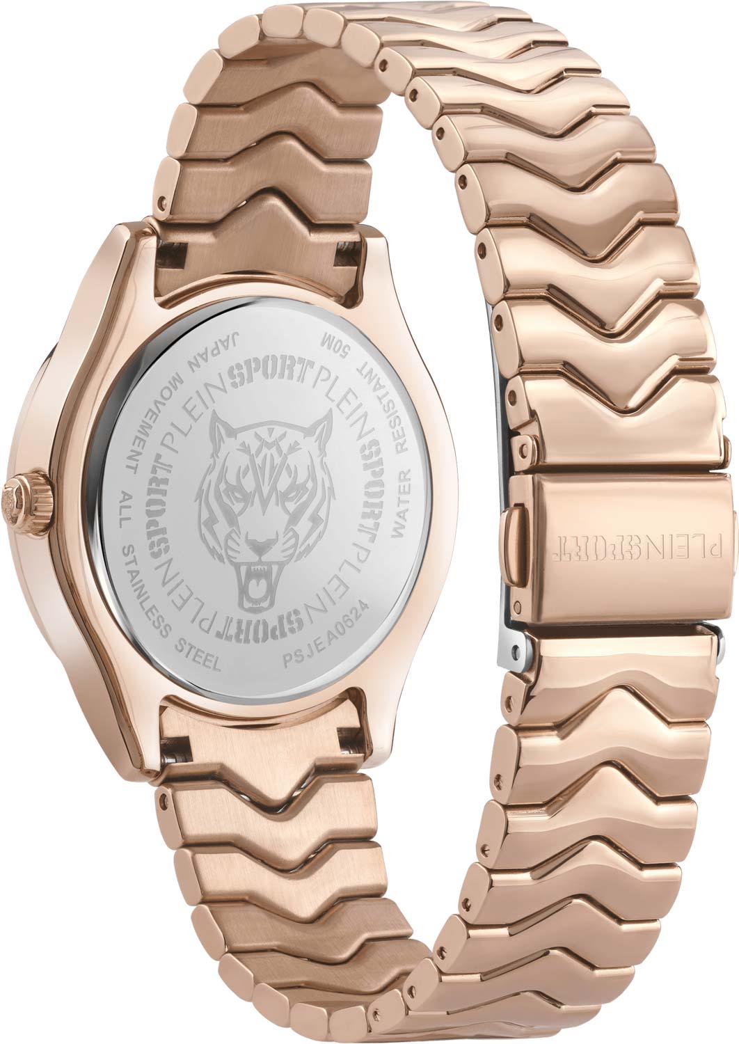 Немецкие кварцевые женские часы Plein Sport Legend PSJEA0624, кварцевый механизм с высокой точностью. Класс водозащиты: 50 метров, позволит защитить корпус от случайных брызг или капель дождя. Корпус и браслет часов изготовлены из стали с IP-покрытиемIP-покрытиеМетод ионного напыления. Демонстрирует повышенную устойчивость к истиранию, окислению и химическим веществам. Под воздействием высокого давления и температуры около 1500°C молекулы металла надёжно соединяются с частицами корпуса часов.. Стрелки с люминесцентным покрытиемЛюминесцентное покрытиеПозволяет считывать показания времени в темноте. Производители наносят на стрелки, часовые индексы, безель или поверхность циферблата светонакопительный состав, дающий холодное свечение..