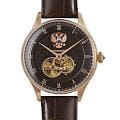 Мужские часы из коллекции «Президент» — это классический аксессуар, сочетающий в себе элегантность и надёжность. Модель выполнена в круглой форме с корпусом диаметром 42,5 мм и толщиной 16,3 мм, защищённым минеральным стекломМинеральное стеклоМинеральное стекло представляет собой искусственно выращенный минерал кварца. Такое стекло отличается особой устойчивостью к повреждениям и царапинам. Уступает по некоторым качествам сапфировому стеклу., устойчивым к мелким повреждениям. Браслет коричневого цвета изготовлен из натуральной кожи и дополнен стандартной застёжкой, что делает его удобным и практичным для повседневного использования. Часы оснащены механизмом с автоподзаводом, обеспечивающим точность хода и минимальное обслуживание. Прозрачная задняя крышка украшена изображением Герба России, что подчёркивает национальную принадлежность и уникальность модели. Водонепроницаемость позволяет использовать модель в повседневных условиях — при мытье рук или под лёгким дождём. Эти часы станут универсальным аксессуаром для тех, кто ценит сочетание стиля, качества и символики — идеальный выбор для уверенных в себе мужчин, следящих за своим имиджем и предпочитающих выделяться.
