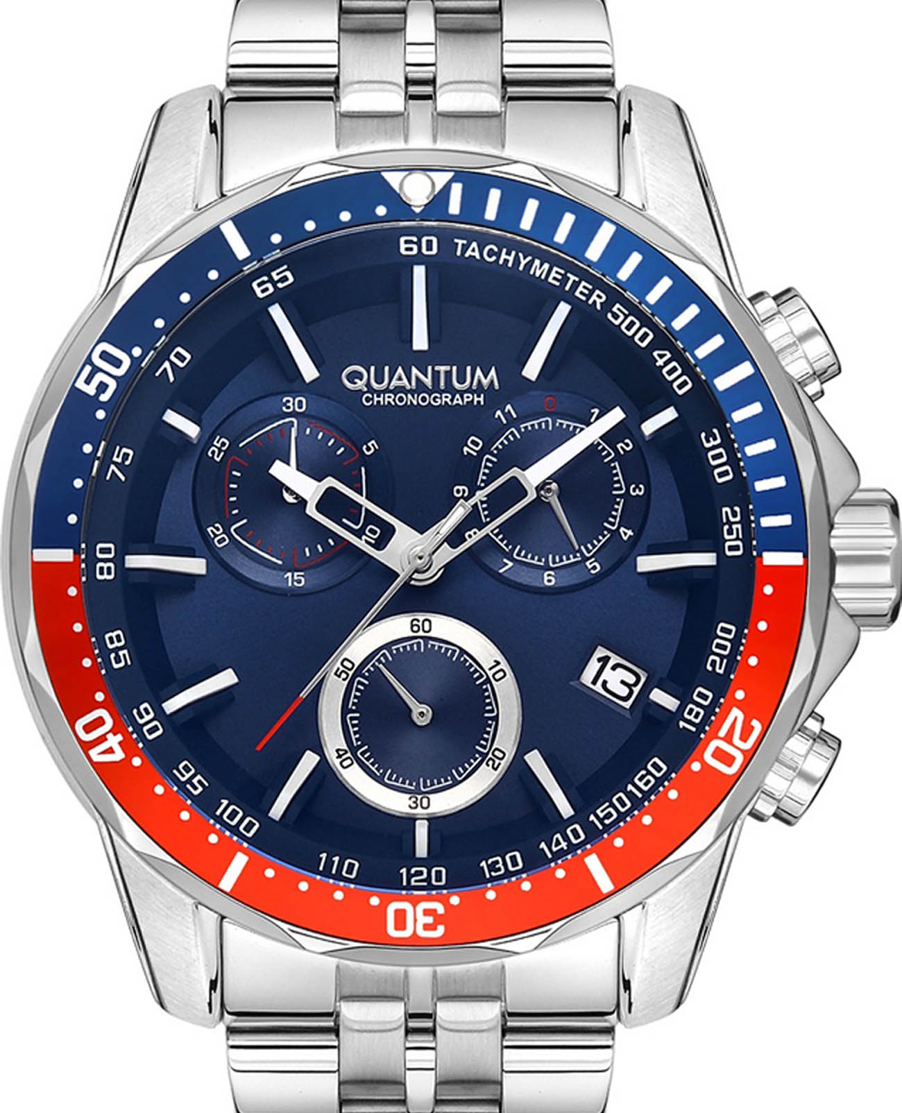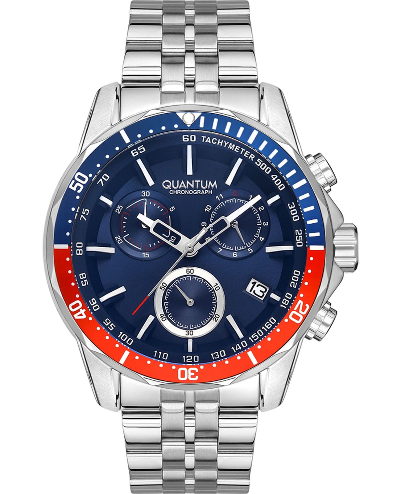 Мужские наручные часы-хронографХронографФункция позволяет измерять отрезки времени с особой точностью: часы, минуты, секунды. Верным признаком хронографа является наличие на циферблате 3 дополнительных окошек-счётчиков. Quantum PWG1036.390, кварцевый механизм с высокой точностью. Минеральное стеклоМинеральное стеклоМинеральное стекло представляет собой искусственно выращенный минерал кварца. Такое стекло отличается особой устойчивостью к повреждениям и царапинам. Уступает по некоторым качествам сапфировому стеклу. устойчивое к появлению царапин, обладающее высокой прозрачностью. Класс водозащиты: 100 метров, позволит плавать, нырять и заниматься другими водными видами спорта. Корпус часов изготовлен из нержавеющей стали. Стрелки и метки с люминесцентным покрытиемЛюминесцентное покрытиеПозволяет считывать показания времени в темноте. Производители наносят на стрелки, часовые индексы, безель или поверхность циферблата светонакопительный состав, дающий холодное свечение.. БезельБезельВнешний ободок, закрепляющий стекло. В спортивных часах так называется поворотное кольцо с делениями на циферблате, выполняет роль таймера – замеряет отрезки времени на шкале. Неподвижный безель – элемент декора. Однонаправленно вращающийся безель на дайверских часах позволяет фиксировать моменты погружения и выныривания на поверхность. с PVD-покрытиемPVDУльтратонкое покрытие наносится в технике вакуумного напыления, сочетает в себе нитрид титана особой прочности со слоем золота или оксида хрома. Несёт в себе декоративную или защитную функцию.. Стальной браслет на раскладной застёжкеРаскладная застёжкаТакой тип застёжки используется только на браслетах из металла. Она никогда не раскрывается полностью, происходит разделение на 2 и более частей. Раскладывающая застёжка снизит вероятность потери часов к минимуму..