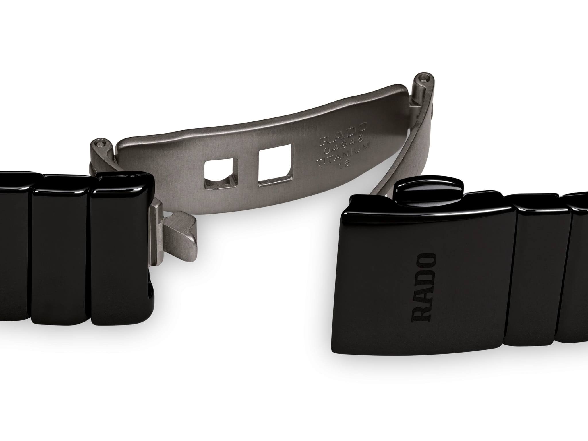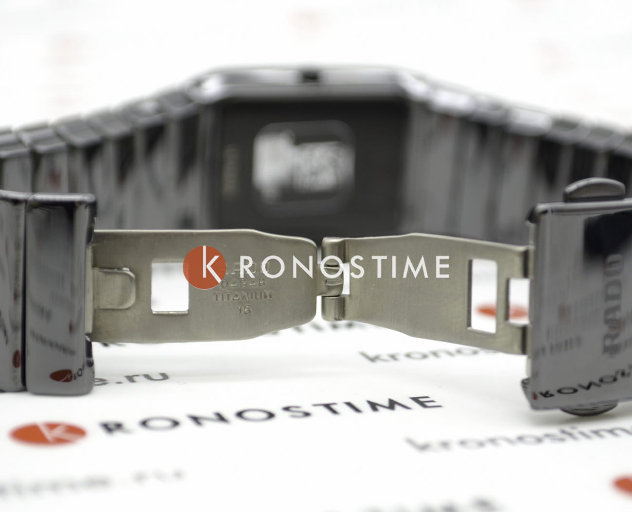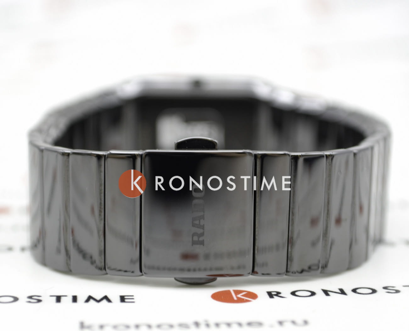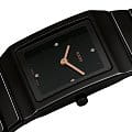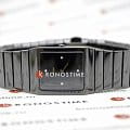 Чёрный прямоугольный циферблат с золотистыми стрелками находится в обрамлении надёжного керамического корпуса. В качестве украшения используются 4 бриллианта в 0,011 карат, драгоценные камни добавляют красоты и изящества. Чёткие геометрические формы. Кварцевый швейцарский механизм ETA 282.001 с высокой точностью хода. Использование высокотехнологичной керамикиВысокотехнологичная керамикаИнновационный запатентованный Rado материал с гладкой или матовой поверхностью. Керамика за счёт кристаллической структуры обладает повышенной устойчивостью от возникновения царапин. Материал способен принимать температуру тела человека, обеспечивая невероятный комфорт при ношении.. Стекло из сапфира. Водонепроницаемость при давлении 5 бар. Габариты: 31,7 x 22,9 x 6,6 мм.