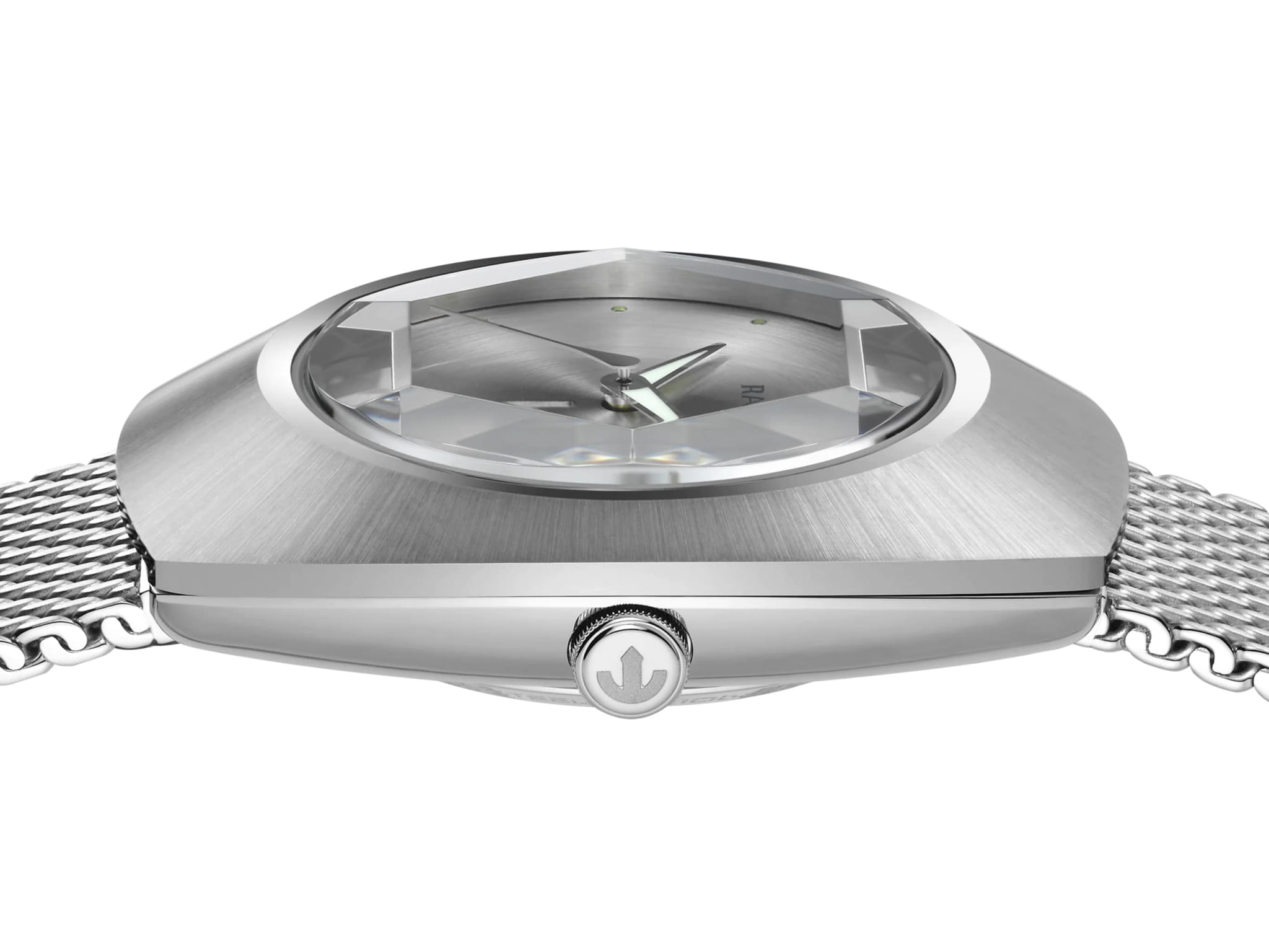 Оригинальное 60-летнее юбилейное издание DiaStar было создано в сотрудничестве со швейцарским дизайнером Альфредо Хаберли. Обрамленные радиально-матовой кифой Ceramos™CeramosМатериал являет собой инновационное сочетание высокотехнологичной керамики и сплава металла. Он объединяет керамическую устойчивость к царапинам и металлический роскошный блеск. с полированными углами и детализацией, установленной поверх соответствующего монохромного корпуса из нержавеющей стали, часы также имеют сапфировое стеклоСапфировое стеклоПрочный и надёжный материал из кристалла сапфира синтетического происхождения, характеризующийся особой твёрдостью и устойчивостью к царапинам и повреждениям. с шестиугольными гранями, чтобы отметить шесть десятилетий с момента появления оригинальных часов. Корпус и циферблат выполнены в монохроматической цветовой гамме. На стрелках и часовых метках покрытие SuperLumiNova®. Внутри автоматический механизм Rado R764 с запасом хода 80 часов обеспечивает надежный и точный хронометраж. Часы имеют диаметр 38 мм и водонепроницаемость до 100 м. Это означает надежность, непреходящую красоту и бесконечное удовольствие от ношения. Это издание поставляется в стильном сером чехле с плетеным браслетом из нержавеющей стали «Milanese», а также в пятнистом сером текстильном ремешке: система EasyClip позволяет легко заменять браслеты.