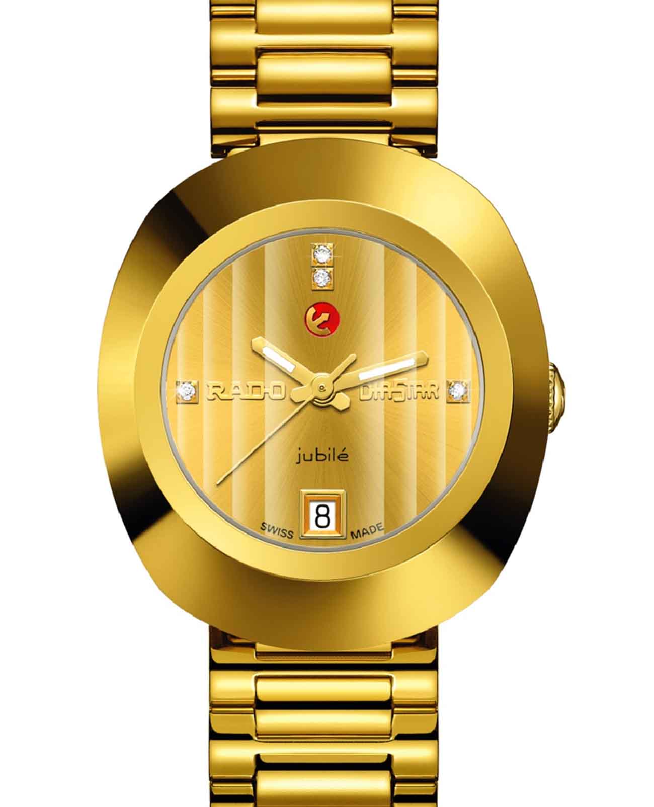 Женские механические швейцарские часы с автоподзаводом Rado The Original R12416773, кварцевый механизм с высокой точностью. Сапфировое стеклоСапфировое стеклоПрочный и надёжный материал из кристалла сапфира синтетического происхождения, характеризующийся особой твёрдостью и устойчивостью к царапинам и повреждениям. устойчивое к появлению царапин, обладающее высокой прозрачностью. Корпус и браслет часов выполнены из нержавеющей стали c PVD-покрытиемPVDУльтратонкое покрытие наносится в технике вакуумного напыления, сочетает в себе нитрид титана особой прочности со слоем золота или оксида хрома. Несёт в себе декоративную или защитную функцию.. Циферблат инкрустирован бриллиантами. Класс водозащиты: 30 метров, позволит защитить корпус от случайных брызг или капель дождя. Браслет на раскладной застёжкеРаскладная застёжкаТакой тип застёжки используется только на браслетах из металла. Она никогда не раскрывается полностью, происходит разделение на 2 и более частей. Раскладывающая застёжка снизит вероятность потери часов к минимуму..