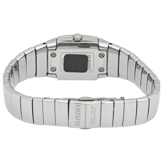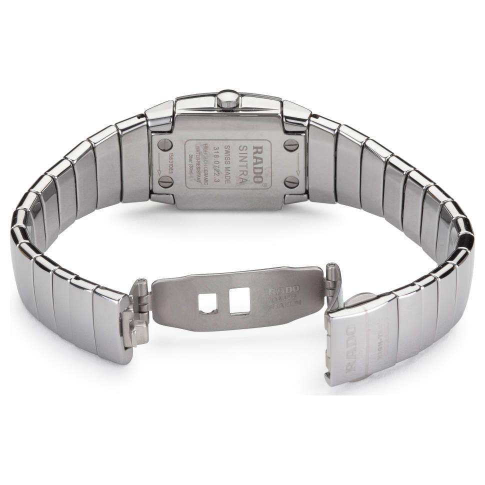 Часы Rado Sintra R13722702, произведение искусства и технологическое чудо, станут прекрасным дополнением к коллекции. Эти швейцарские часы оснащены кварцевым механизмом. Корпус изготовлен из высокотехнологичной керамикиВысокотехнологичная керамикаИнновационный запатентованный Rado материал с гладкой или матовой поверхностью. Керамика за счёт кристаллической структуры обладает повышенной устойчивостью от возникновения царапин. Материал способен принимать температуру тела человека, обеспечивая невероятный комфорт при ношении.. Браслет изготовлен из CeramosCeramosМатериал являет собой инновационное сочетание высокотехнологичной керамики и сплава металла. Он объединяет керамическую устойчивость к царапинам и металлический роскошный блеск. . Сапфировое стеклоСапфировое стеклоПрочный и надёжный материал из кристалла сапфира синтетического происхождения, характеризующийся особой твёрдостью и устойчивостью к царапинам и повреждениям. устойчивое к появлению царапин, обладающее высокой прозрачностью. Класс водозащиты: 30 метров, позволит защитить корпус от случайных брызг или капель дождя. Белые бриллианты (0,011 карата) в положении "3", "6", "9" и "12 часов".