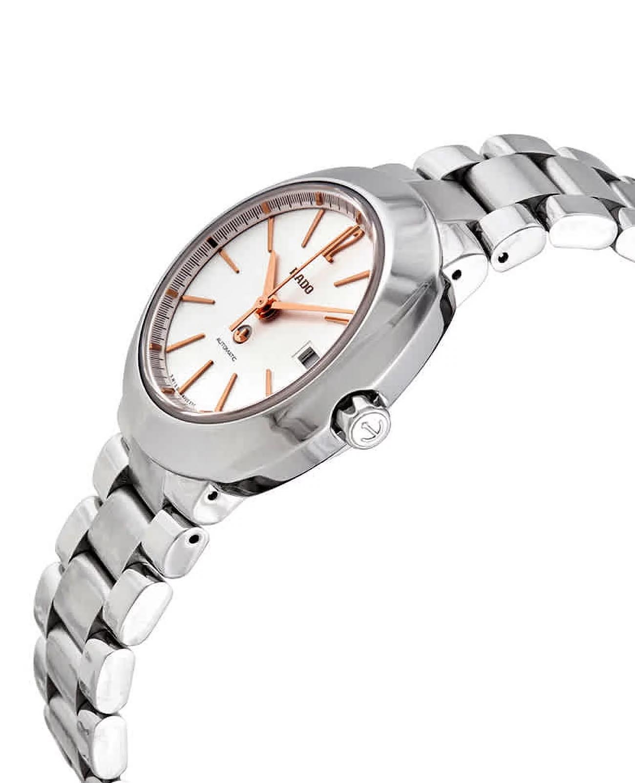 Женские механические швейцарские часы с автоподзаводом Rado D-Star R15514113. Сапфировое стеклоСапфировое стеклоПрочный и надёжный материал из кристалла сапфира синтетического происхождения, характеризующийся особой твёрдостью и устойчивостью к царапинам и повреждениям. устойчивое к мелким механическим повреждениям. Корпус часов изготовлен из углеродистой диффузной стали. Окошко даты находится в положении 3 часа. Класс водозащиты: 100 метров, позволит плавать, нырять и заниматься другими водными видами спорт. Браслет нержавеющей стали на раскладной застёжкеРаскладная застёжкаТакой тип застёжки используется только на браслетах из металла. Она никогда не раскрывается полностью, происходит разделение на 2 и более частей. Раскладывающая застёжка снизит вероятность потери часов к минимуму..