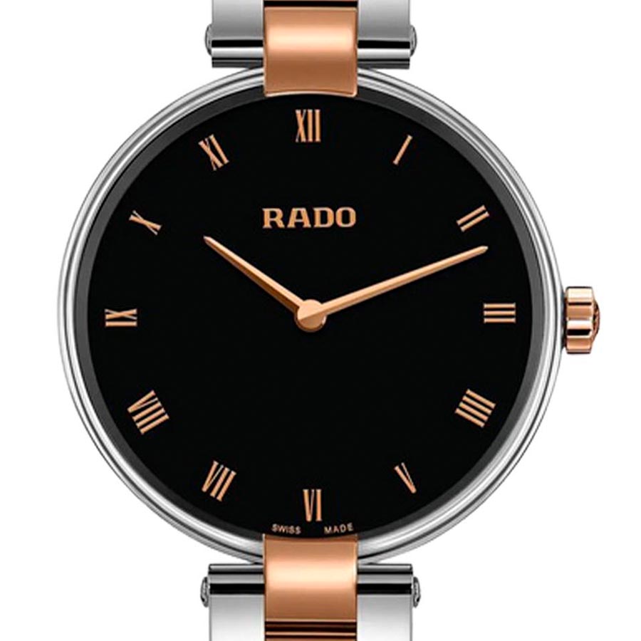 Швейцарские женские часы Rado Coupole R22850173, кварцевый механизм с высокой точностью. Сапфировое стеклоСапфировое стеклоПрочный и надёжный материал из кристалла сапфира синтетического происхождения, характеризующийся особой твёрдостью и устойчивостью к царапинам и повреждениям. устойчивое к появлению царапин, обладающее высокой прозрачностью. Корпус часов изготовлен из нержавеющей стали. Класс водозащиты: 50 метров, позволит защитить корпус от случайных брызг или капель дождя. Стальной браслет с частичным PVD-покрытиемPVDУльтратонкое покрытие наносится в технике вакуумного напыления, сочетает в себе нитрид титана особой прочности со слоем золота или оксида хрома. Несёт в себе декоративную или защитную функцию. на раскладной застёжкеРаскладная застёжкаТакой тип застёжки используется только на браслетах из металла. Она никогда не раскрывается полностью, происходит разделение на 2 и более частей. Раскладывающая застёжка снизит вероятность потери часов к минимуму..