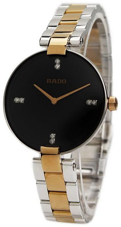 Швейцарские женские часы Rado Coupole R22850703, кварцевый механизм с высокой точностью. Сапфировое стеклоСапфировое стеклоПрочный и надёжный материал из кристалла сапфира синтетического происхождения, характеризующийся особой твёрдостью и устойчивостью к царапинам и повреждениям. устойчивое к появлению царапин, обладающее высокой прозрачностью. Корпус часов изготовлен из нержавеющей стали. Класс водозащиты: 50 метров, позволит защитить корпус от случайных брызг или капель дождя. Стальной браслет с частичным PVD-покрытиемPVDУльтратонкое покрытие наносится в технике вакуумного напыления, сочетает в себе нитрид титана особой прочности со слоем золота или оксида хрома. Несёт в себе декоративную или защитную функцию. на раскладной застёжкеРаскладная застёжкаТакой тип застёжки используется только на браслетах из металла. Она никогда не раскрывается полностью, происходит разделение на 2 и более частей. Раскладывающая застёжка снизит вероятность потери часов к минимуму.. Циферблат декорирован бриллиантами.