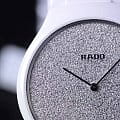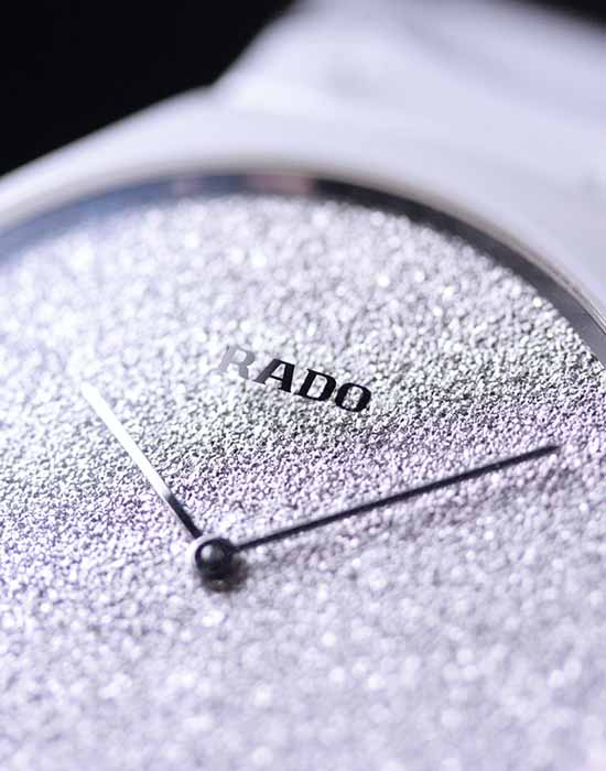 Ультратонкие часы (5 мм) отличается необычным циферблатом с мерцающей зерненой структурой. Это эксклюзивный аксессуар, способный приковывать взгляды окружающих. Швейцарский кварцевый механизм ETA 282.001 (толщина – 1 мм). Корпус и браслет из белой высокотехнологичной керамикиВысокотехнологичная керамикаИнновационный запатентованный Rado материал с гладкой или матовой поверхностью. Керамика за счёт кристаллической структуры обладает повышенной устойчивостью от возникновения царапин. Материал способен принимать температуру тела человека, обеспечивая невероятный комфорт при ношении.. Водонепроницаемость 3 бар. Сапфировое стекло. . Диаметр корпуса: 39 мм.