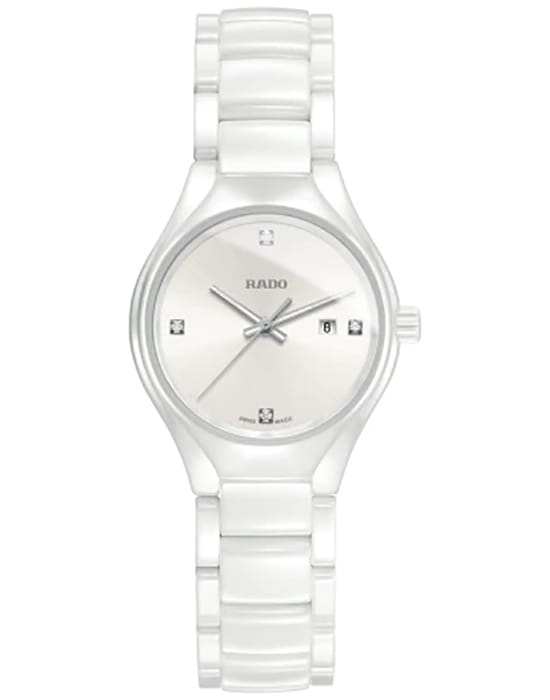 Лимитированные женские швейцарские наручные часы для России в количестве 150 экземпляров Rado True R27061712, кварцевый механизм с высокой точностью. Сапфировое стекло устойчивое к появлению царапин, обладающее высокой прозрачностью. Класс водозащиты: 50 метров, позволит защитить корпус от случайных брызг или капель дождя. Корпус часов изготовлен из керамики, белого цвета.