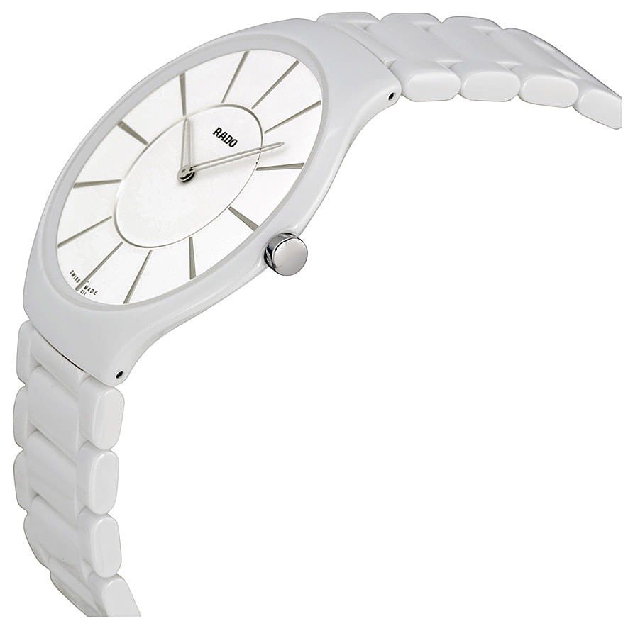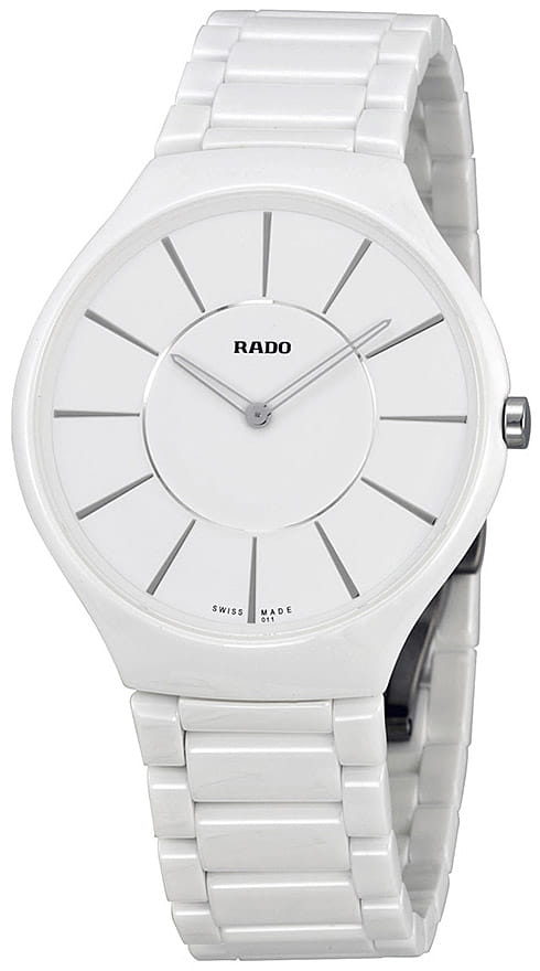 Швейцарские мужские Rado True Thinline R27957112, кварцевый механизм с высокой точностью. Сапфировое стеклоСапфировое стеклоПрочный и надёжный материал из кристалла сапфира синтетического происхождения, характеризующийся особой твёрдостью и устойчивостью к царапинам и повреждениям. устойчивое к появлению царапин, обладающее высокой прозрачностью. Корпус часов изготовлен из высокотехнологичной керамикиВысокотехнологичная керамикаИнновационный запатентованный Rado материал с гладкой или матовой поверхностью. Керамика за счёт кристаллической структуры обладает повышенной устойчивостью от возникновения царапин. Материал способен принимать температуру тела человека, обеспечивая невероятный комфорт при ношении.. Класс водозащиты: 30 метров, позволит защитить корпус от случайных брызг или капель дождя. Керамический браслет на застёжке-бабочке с кнопкамиЗастёжка "бабочка"Такой вид застёжки дополняется предохранителями, помогающими избежать случайного раскрытия браслета. Обладают изящным исполнением. .