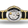 Швейцарские женские механические часы с автоподзаводом Rado Centrix R30034712. Сапфировое стеклоСапфировое стеклоПрочный и надёжный материал из кристалла сапфира синтетического происхождения, характеризующийся особой твёрдостью и устойчивостью к царапинам и повреждениям. устойчивое к мелким механическим повреждениям. Корпус часов изготовлен из нержавеющей стали с PVD-покрытиемPVDУльтратонкое покрытие наносится в технике вакуумного напыления, сочетает в себе нитрид титана особой прочности со слоем золота или оксида хрома. Несёт в себе декоративную или защитную функцию.. БезельБезельВнешний ободок, закрепляющий стекло. В спортивных часах так называется поворотное кольцо с делениями на циферблате, выполняет роль таймера – замеряет отрезки времени на шкале. Неподвижный безель – элемент декора. Однонаправленно вращающийся безель на дайверских часах позволяет фиксировать моменты погружения и выныривания на поверхность. из керамики. Окошко даты находится в положении 3 часа. Циферблат украшен бриллиантами. Класс водозащиты: 30 метров, позволит защитить корпус от случайных брызг или капель дождя. Браслет нержавеющей стали с PVD-покрытиемPVDУльтратонкое покрытие наносится в технике вакуумного напыления, сочетает в себе нитрид титана особой прочности со слоем золота или оксида хрома. Несёт в себе декоративную или защитную функцию. и высокотехнологичной плазменной керамикиВысокотехнологичная плазменная керамикаИнновационный материал, технология запатентована. Выплавление керамики осуществляется в печи при 20 000 °C, белоснежный материал под воздействием ультравысокой температуры приобретает уникальный блеск, присущий металлам. на раскладной застёжкеРаскладная застёжкаТакой тип застёжки используется только на браслетах из металла. Она никогда не раскрывается полностью, происходит разделение на 2 и более частей. Раскладывающая застёжка снизит вероятность потери часов к минимуму..