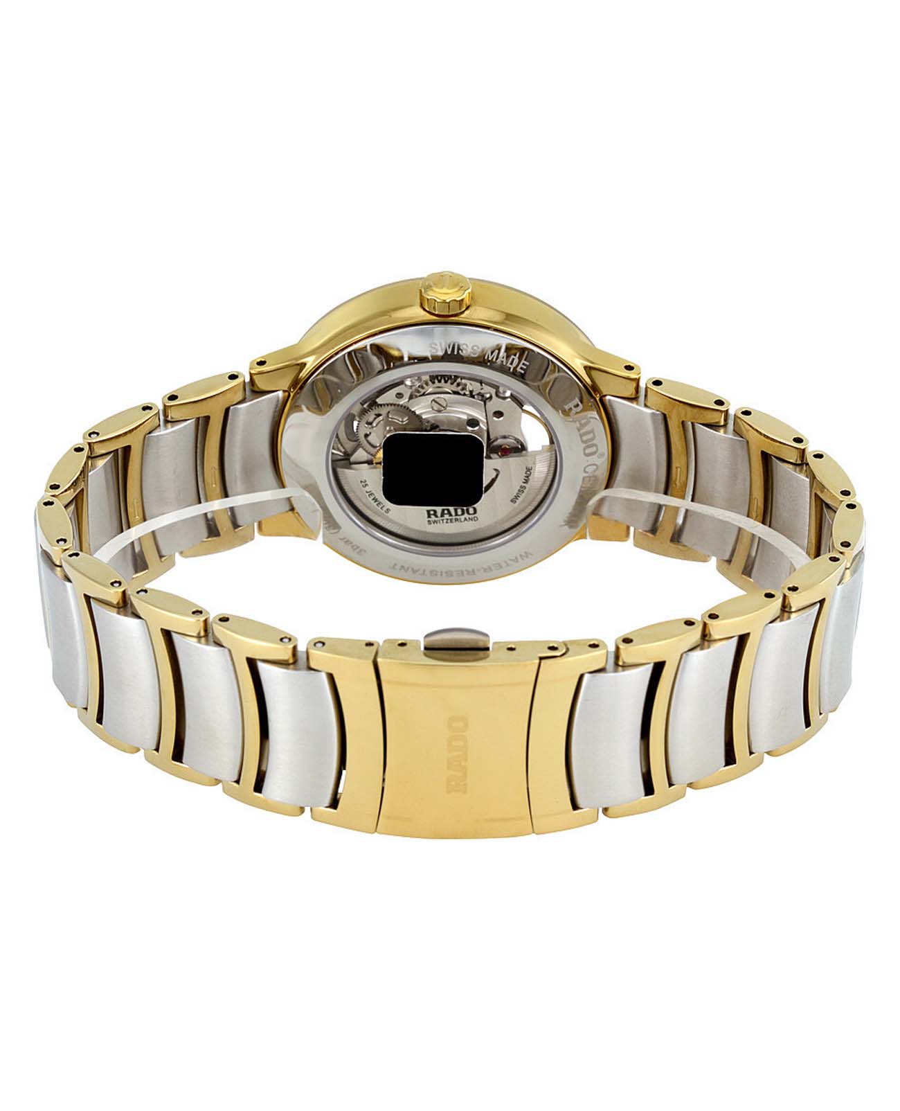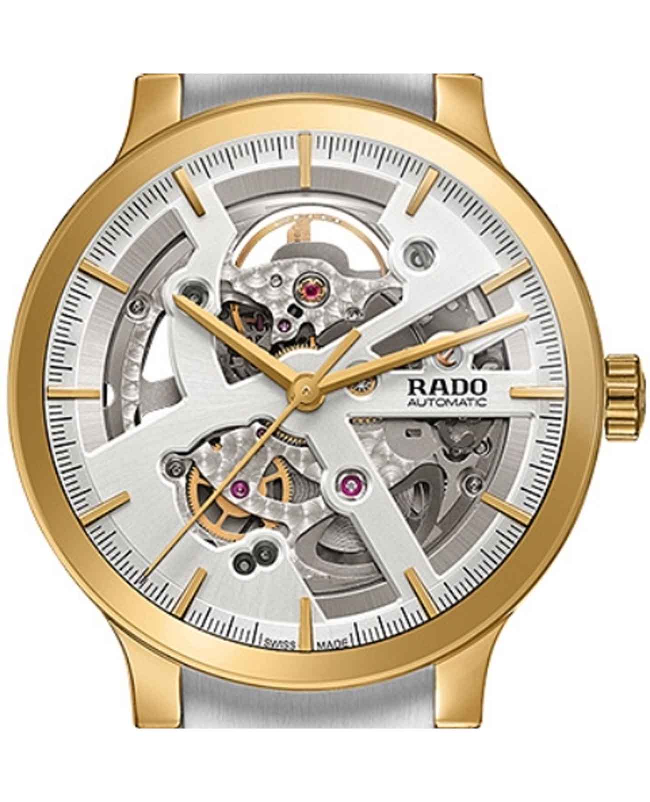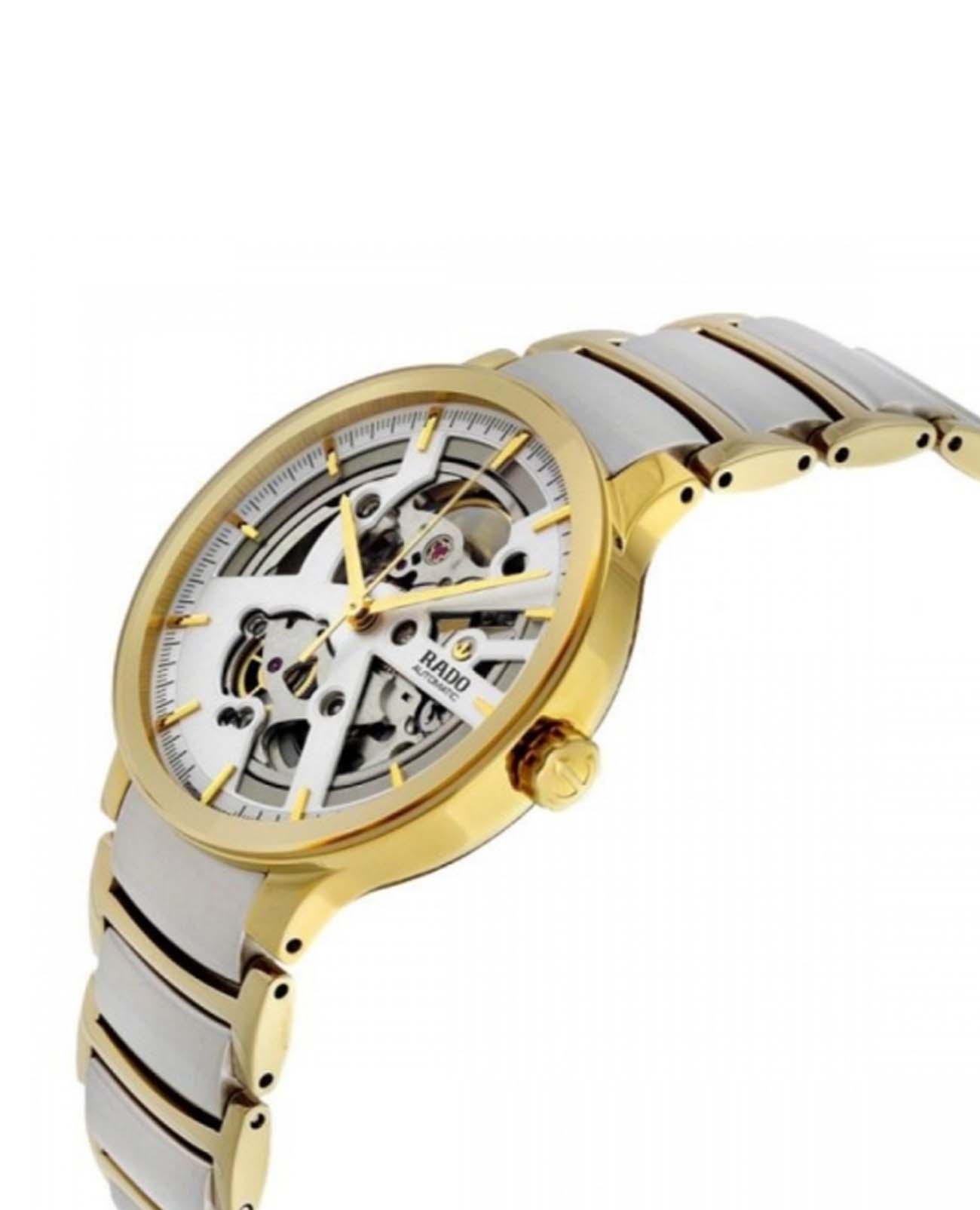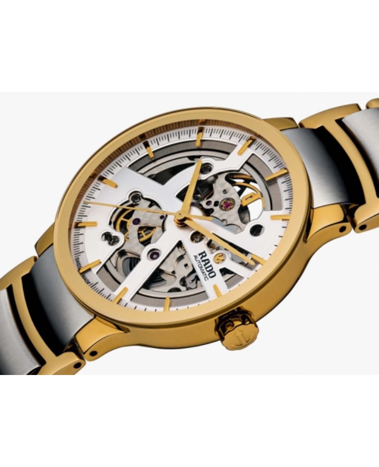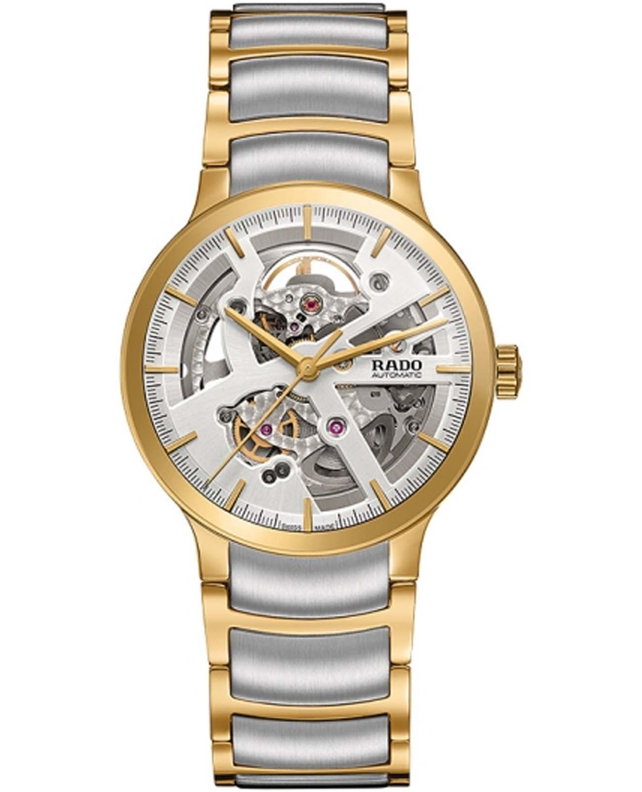 Мужские механические швейцарские часы-скелетоны Rado Centrix Automatic Diamonds Open Heart R30180113 из коллекции Rado Centrix отражают собой часовое искусство в премиальном исполнении. Сапфировое стеклоСапфировое стеклоПрочный и надёжный материал из кристалла сапфира синтетического происхождения, характеризующийся особой твёрдостью и устойчивостью к царапинам и повреждениям. устойчивое к мелким механическим повреждениям. Корпус часов изготовлен из нержавеющей стали с PVD-покрытиемPVDУльтратонкое покрытие наносится в технике вакуумного напыления, сочетает в себе нитрид титана особой прочности со слоем золота или оксида хрома. Несёт в себе декоративную или защитную функцию.. Скелетонизированный циферблат инкрустирован бриллиантами. Класс водозащиты: 50 метров, позволит защитить корпус от случайных брызг или капель дождя. Браслет из стали с PVD-покрытиемPVDУльтратонкое покрытие наносится в технике вакуумного напыления, сочетает в себе нитрид титана особой прочности со слоем золота или оксида хрома. Несёт в себе декоративную или защитную функцию. и высокотехнологичной керамикиВысокотехнологичная керамикаИнновационный запатентованный Rado материал с гладкой или матовой поверхностью. Керамика за счёт кристаллической структуры обладает повышенной устойчивостью от возникновения царапин. Материал способен принимать температуру тела человека, обеспечивая невероятный комфорт при ношении. на раскладной застёжкеРаскладная застёжкаТакой тип застёжки используется только на браслетах из металла. Она никогда не раскрывается полностью, происходит разделение на 2 и более частей. Раскладывающая застёжка снизит вероятность потери часов к минимуму..