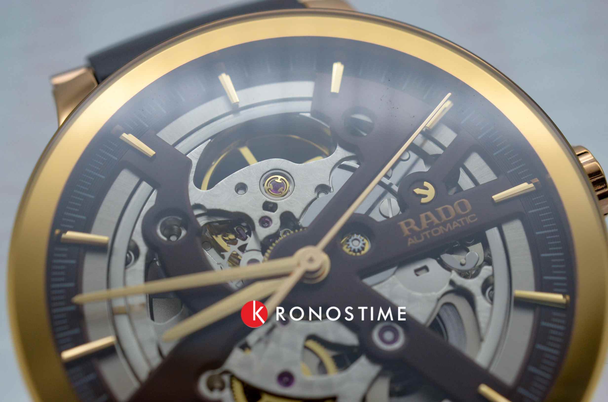 Часы-скелетоны станут главным атрибутом в создании индивидуального образа, оригинальная модель точно станет объектом притяжения окружающих. Внутри корпуса из нержавеющей стали заключён автоматический калибр ETA C07.631 с запасом хода 80 часов. Стальной браслет дополнен вставками из высокотехнологичной керамикиВысокотехнологичная керамикаИнновационный запатентованный Rado материал с гладкой или матовой поверхностью. Керамика за счёт кристаллической структуры обладает повышенной устойчивостью от возникновения царапин. Материал способен принимать температуру тела человека, обеспечивая невероятный комфорт при ношении.. Сапфировое стеклоСапфировое стеклоПрочный и надёжный материал из кристалла сапфира синтетического происхождения, характеризующийся особой твёрдостью и устойчивостью к царапинам и повреждениям. устойчиво к образованию царапин. Водостойкость 3 бар. Золотистое PVD-покрытиеPVDУльтратонкое покрытие наносится в технике вакуумного напыления, сочетает в себе нитрид титана особой прочности со слоем золота или оксида хрома. Несёт в себе декоративную или защитную функцию.. Диаметр корпуса: 38 мм.