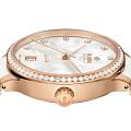 Женские механические часы с автоподзаводом Rado из коллекции Centrix — это гармоничное сочетание искусства, дизайна и швейцарского мастерства. Корпус диаметром 35 мм и толщиной 11,1 мм выполнен из нержавеющей стали с PVD-покрытиемPVDУльтратонкое покрытие наносится в технике вакуумного напыления, сочетает в себе нитрид титана особой прочности со слоем золота или оксида хрома. Несёт в себе декоративную или защитную функцию. розового золота. БезельБезельВнешний ободок, закрепляющий стекло. В спортивных часах так называется поворотное кольцо с делениями на циферблате, выполняет роль таймера – замеряет отрезки времени на шкале. Неподвижный безель – элемент декора. Однонаправленно вращающийся безель на дайверских часах позволяет фиксировать моменты погружения и выныривания на поверхность. из нержавеющей стали инкрустирован 60 бриллиантами полной огранки Top Wesselton VS-SI. Циферблат бежевого цвета из натурального перламутра украшен 11 бриллиантами и дополнен окошком даты в положении 6 часов. Циферблат защищён выпуклым сапфировым стекломСапфировое стеклоПрочный и надёжный материал из кристалла сапфира синтетического происхождения, характеризующийся особой твёрдостью и устойчивостью к царапинам и повреждениям. с антибликовым покрытиемАнтибликовое покрытиеСлой оксида металла в 0,13-0,3 микрон, благодаря которому стекло часов не бликует и не отражает свет. Антибликовое покрытие уменьшает отражение света в 10 раз, обеспечивая отличную читаемость показателей циферблата. с обеих сторон. Механизм — автоматический калибр R763 с антимагнитной пружиной Nivachron™Nivachron™Специально разработанный инновационный сплав Nivachron™ повышает устойчивость часов к воздействию магнитных полей., отрегулированный в пяти положениях, с запасом хода 80 часов. Прозрачная задняя крышка с сапфировым стеклом позволяет наблюдать за работой механизма. Часы оснащены браслетом из полированной стали с PVD-покрытиемPVDУльтратонкое покрытие наносится в технике вакуумного напыления, сочетает в себе нитрид титана особой прочности со слоем золота или оксида хрома. Несёт в себе декоративную или защитную функцию. розового золота и вставками из высокотехнологичной керамикиВысокотехнологичная керамикаИнновационный запатентованный Rado материал с гладкой или матовой поверхностью. Керамика за счёт кристаллической структуры обладает повышенной устойчивостью от возникновения царапин. Материал способен принимать температуру тела человека, обеспечивая невероятный комфорт при ношении., а также трёхсекционной застёжкой из нержавеющей стали. Водонепроницаемость 50 м позволяет использовать часы в повседневных условиях. Гарантия — 5 лет. Идеальный выбор для тех, кто ценит роскошь, точность и элегантность.