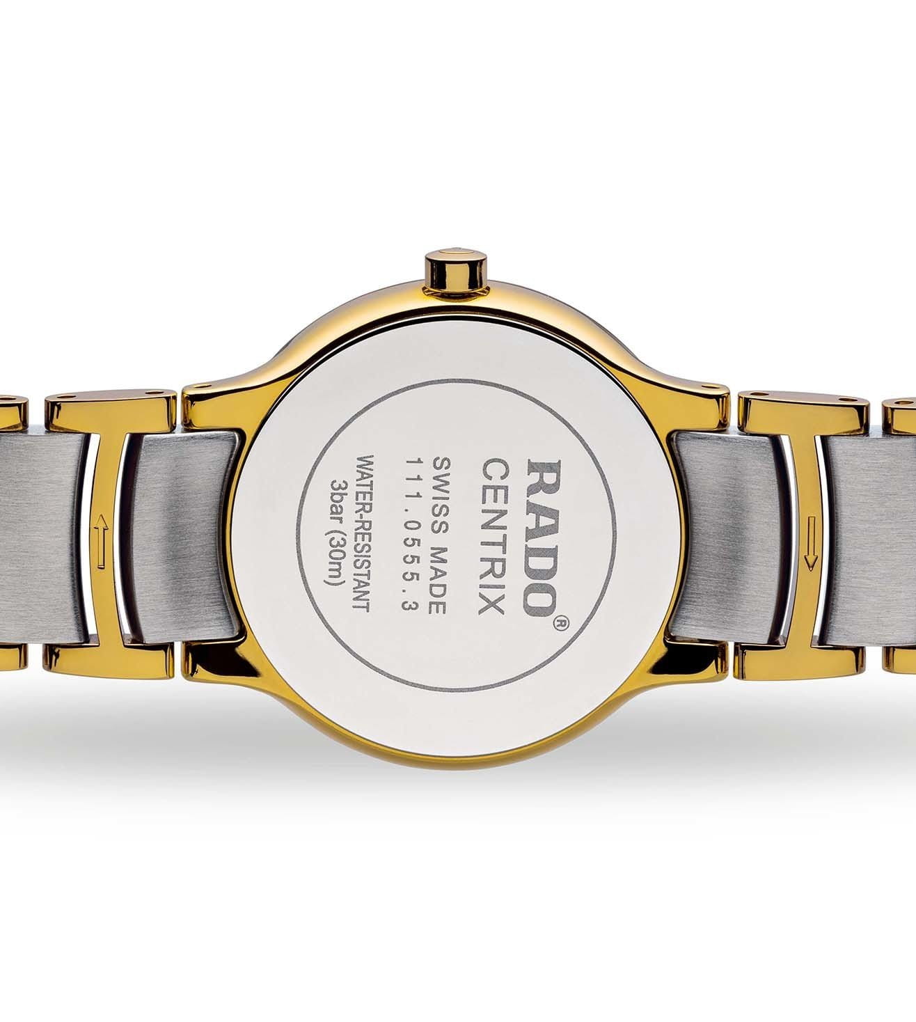 Швейцарские женские часы с надёжным кварцевым механизмом Rado Centrix Diamonds R30932923. Корпус часов изготовлен из нержавеющей стали. Браслет из стали с частичным PVD-покрытиемPVDУльтратонкое покрытие наносится в технике вакуумного напыления, сочетает в себе нитрид титана особой прочности со слоем золота или оксида хрома. Несёт в себе декоративную или защитную функцию. на раскладной застёжкеРаскладная застёжкаТакой тип застёжки используется только на браслетах из металла. Она никогда не раскрывается полностью, происходит разделение на 2 и более частей. Раскладывающая застёжка снизит вероятность потери часов к минимуму.. Сапфировое стеклоСапфировое стеклоПрочный и надёжный материал из кристалла сапфира синтетического происхождения, характеризующийся особой твёрдостью и устойчивостью к царапинам и повреждениям. устойчивое к мелким механическим повреждениям. Класс водозащиты: 30 метров, позволит защитить корпус от случайных брызг или капель дождя. Окошко даты находится в положении 3 часа. Стрелки и метки с люминесцентным покрытиемЛюминесцентное покрытиеПозволяет считывать показания времени в темноте. Производители наносят на стрелки, часовые индексы, безель или поверхность циферблата светонакопительный состав, дающий холодное свечение..