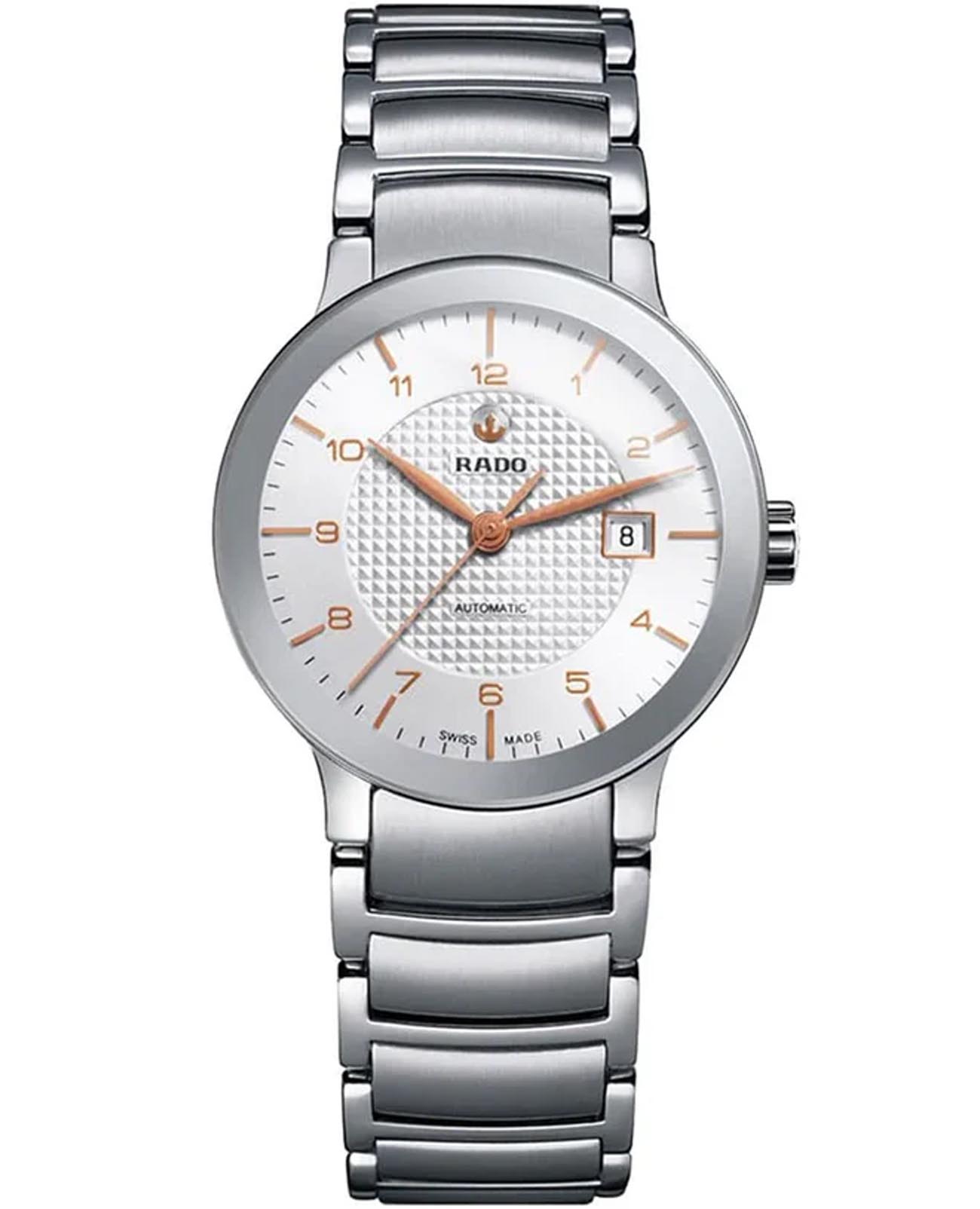 Швейцарские женские механические часы с автоподзаводом Rado Centrix R30940143. Сапфировое стеклоСапфировое стеклоПрочный и надёжный материал из кристалла сапфира синтетического происхождения, характеризующийся особой твёрдостью и устойчивостью к царапинам и повреждениям. устойчивое к появлению царапин, обладающее высокой прозрачностью. Корпус часов изготовлен из нержавеющей стали. Окошко даты находится в положении 3 часа. Класс водозащиты: 30 метров, позволит защитить корпус от случайных брызг или капель дождя. Браслет из нержавеющей стали на раскладной застёжкеРаскладная застёжкаТакой тип застёжки используется только на браслетах из металла. Она никогда не раскрывается полностью, происходит разделение на 2 и более частей. Раскладывающая застёжка снизит вероятность потери часов к минимуму..