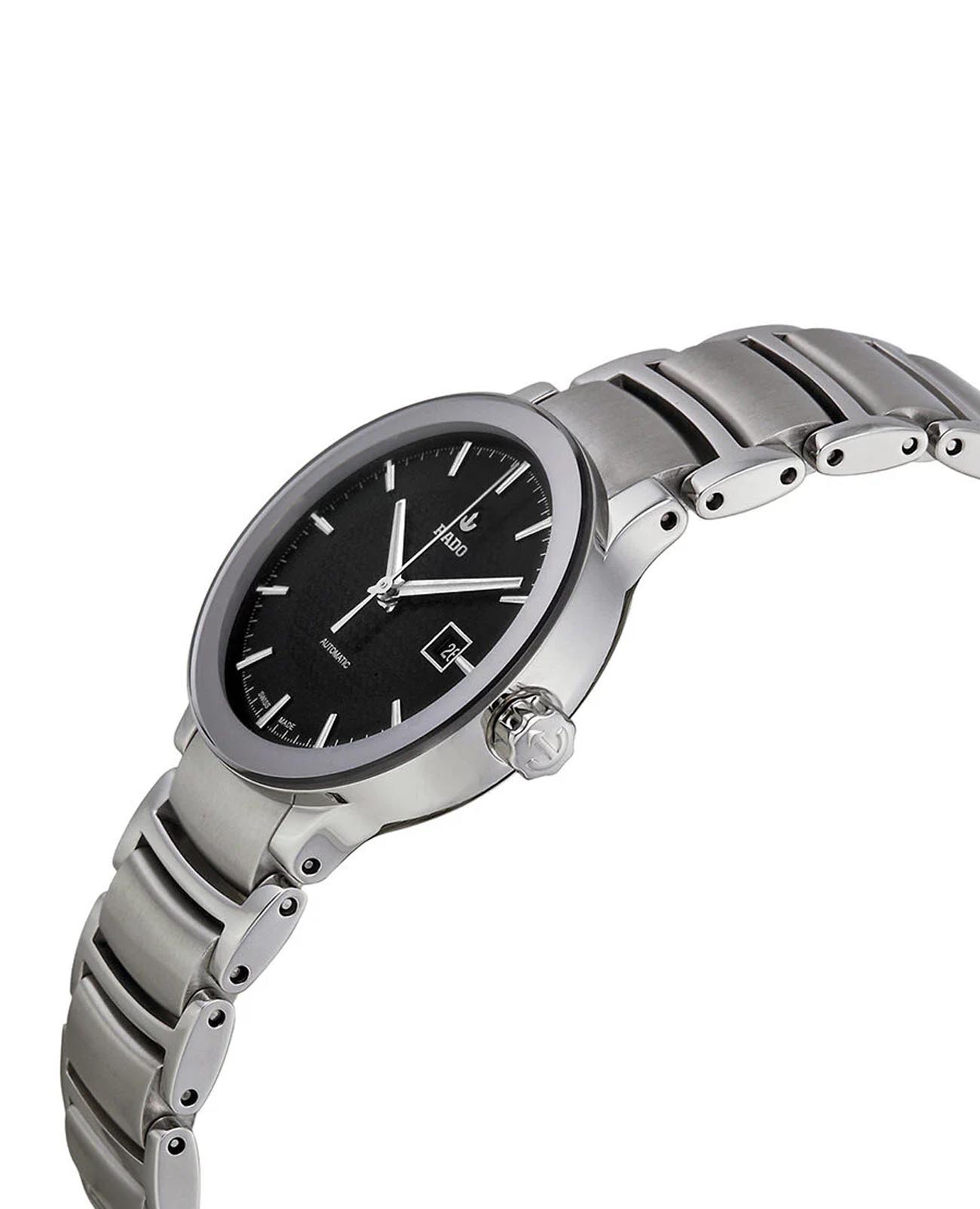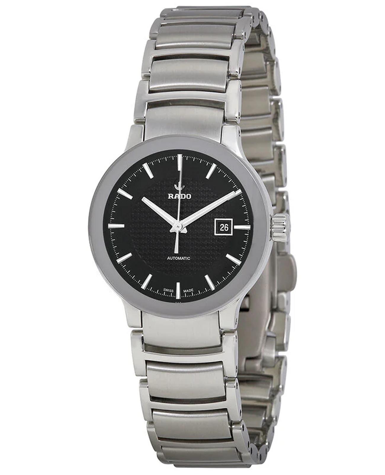 Швейцарские женские механические часы с автоподзаводом Rado Centrix R30940163. Корпус часов изготовлен из нержавеющей стали. Сапфировое стеклоСапфировое стеклоПрочный и надёжный материал из кристалла сапфира синтетического происхождения, характеризующийся особой твёрдостью и устойчивостью к царапинам и повреждениям. устойчивое к мелким механическим повреждениям. Окошко даты находится в положении 3 часа. Стрелки с люминесцентным покрытиемЛюминесцентное покрытиеПозволяет считывать показания времени в темноте. Производители наносят на стрелки, часовые индексы, безель или поверхность циферблата светонакопительный состав, дающий холодное свечение.. Класс водозащиты: 30 метров, позволит защитить корпус от случайных брызг или капель дождя. Браслет нержавеющей стали на раскладной застёжкеРаскладная застёжкаТакой тип застёжки используется только на браслетах из металла. Она никогда не раскрывается полностью, происходит разделение на 2 и более частей. Раскладывающая застёжка снизит вероятность потери часов к минимуму..
